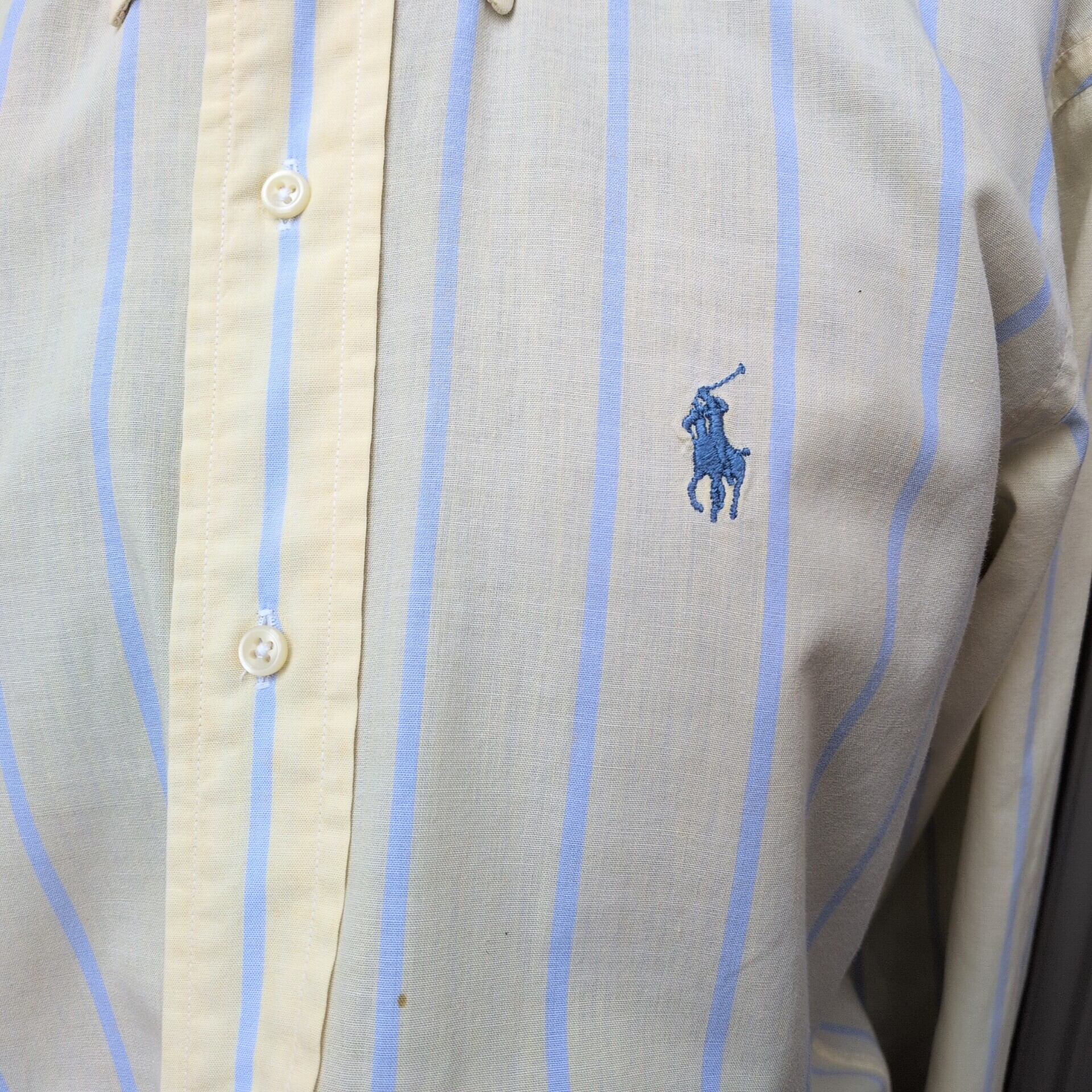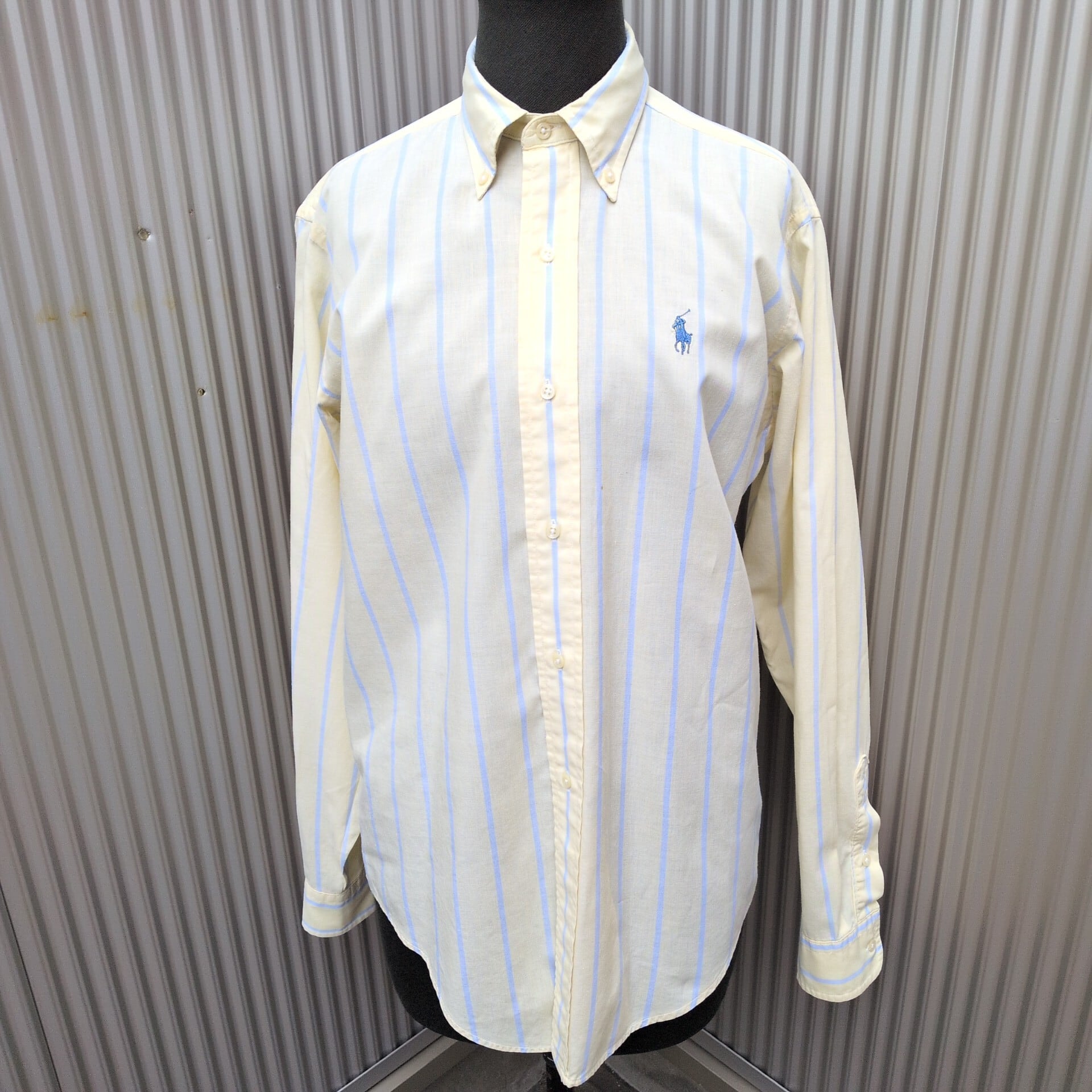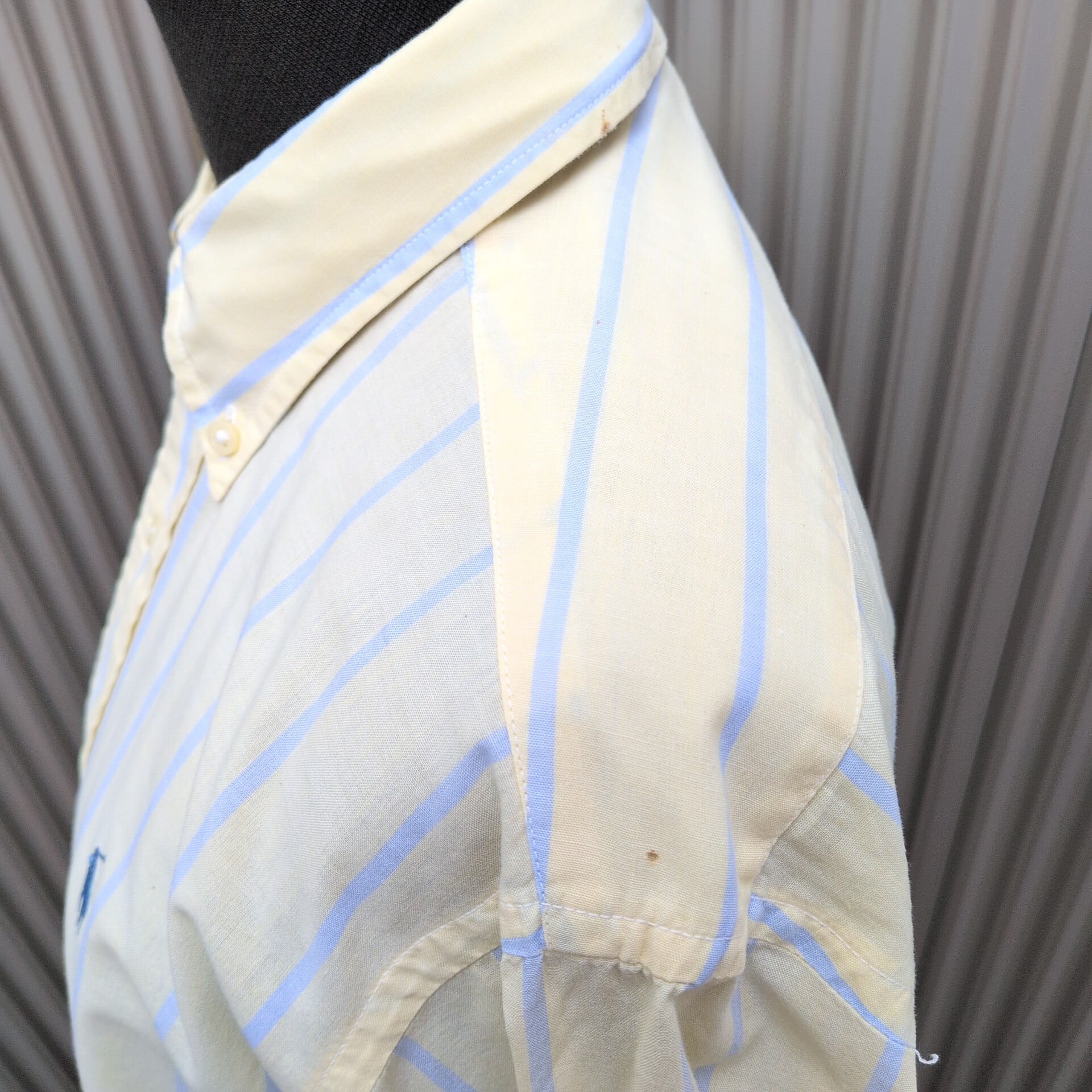 【80s/90s/USA製】ポロ バイ ラルフローレンPolo by RALPH LAUREN/ビンテージ/ヴィンテージ/アメリカ古着/19672/ストライプ柄/ワンポイント刺繍/ボタンダウン/BDシャツ/18/黄色/ | 古着屋RAINBOWFIELD Since 2006