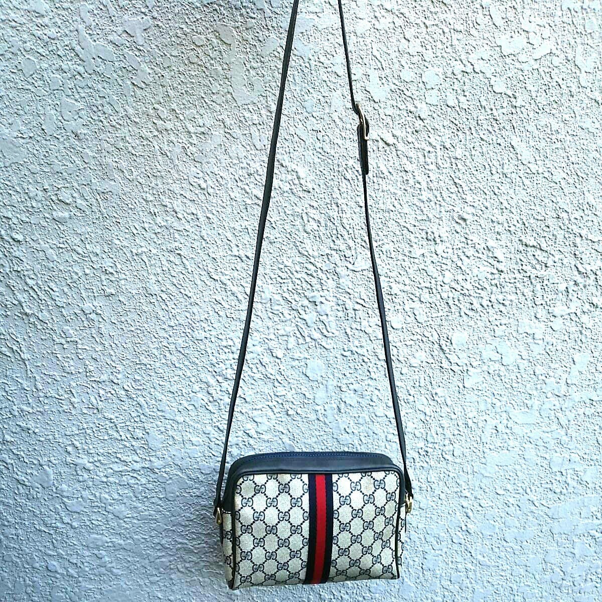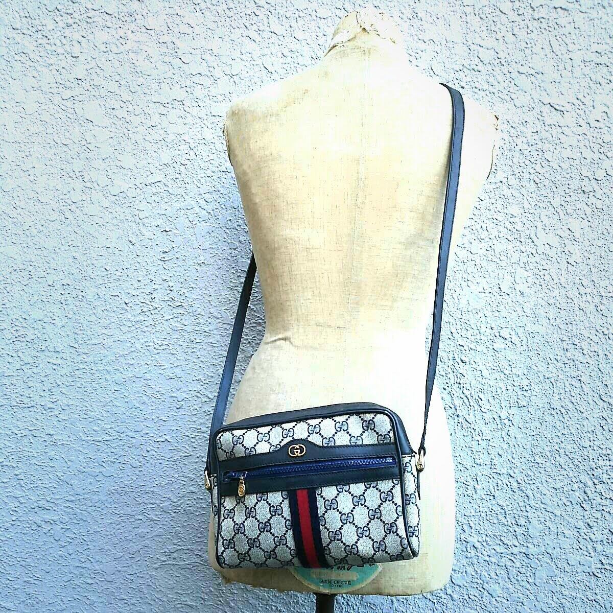 【70s】グッチ パルファムGUCCI PARFUMS/オールドグッチ/ビンテージ/ヴィンテージ/GG柄/シェリーライン/ショルダーバッグ/ネイビー/