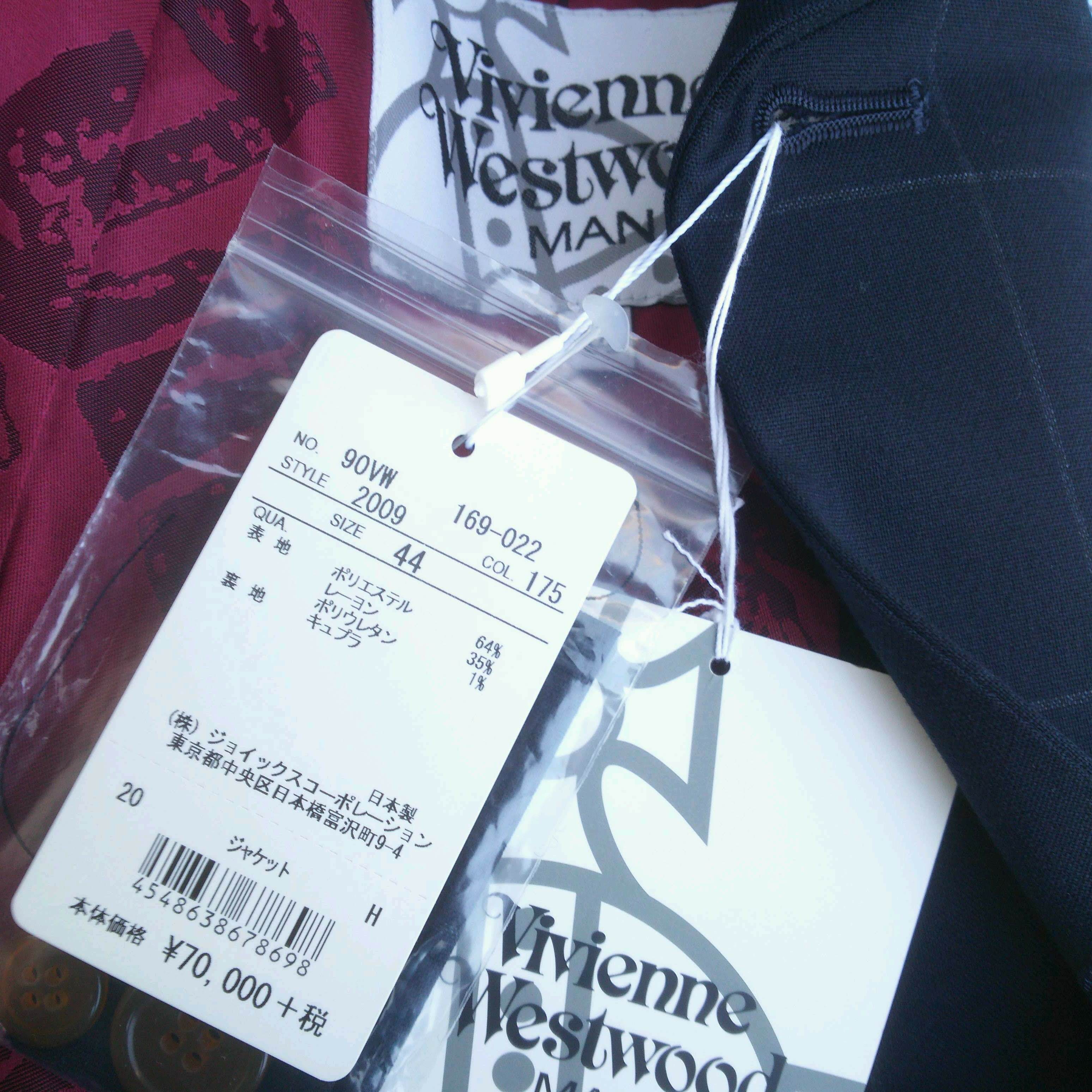 【国内正規品】新品/VW/ヴィヴィアンウエストウッド マンVivienne Westwood MAN/ウインドウペン/チェック柄/テーラードジャケット/44/ネイビー/定価75600/