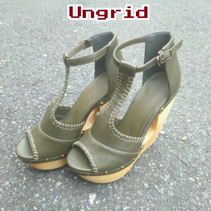 美品/アングリッドUngrid/ウェッジソール/アンクルストラップ/サンダル/M/23/カーキ/