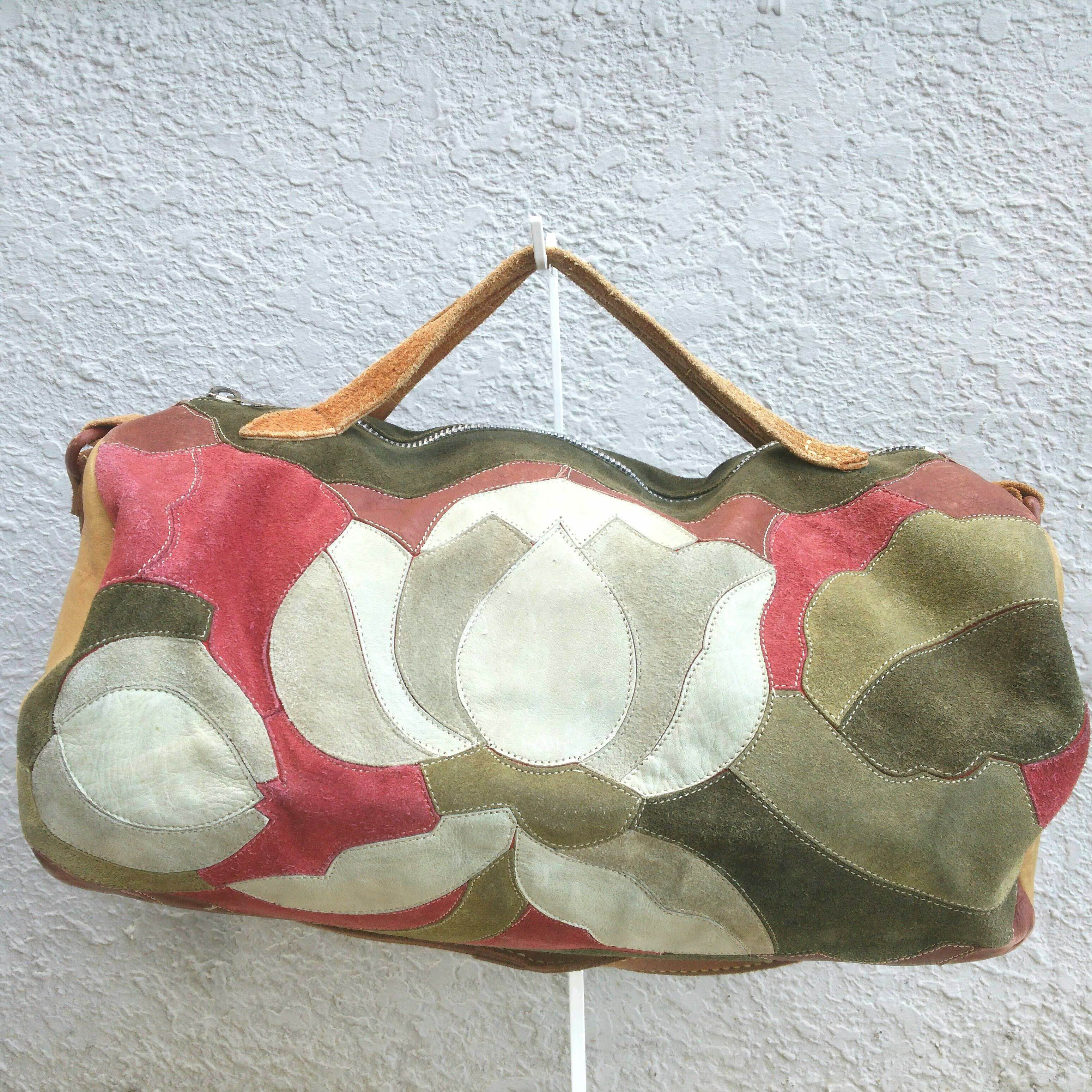 【激レア/70s】チャーChar/ビンテージ/ヴィンテージ/ヒッピー/マルチカラー/レザー×スウェード/ショルダーバッグ/ドラムバッグ/ボストンバッグ/