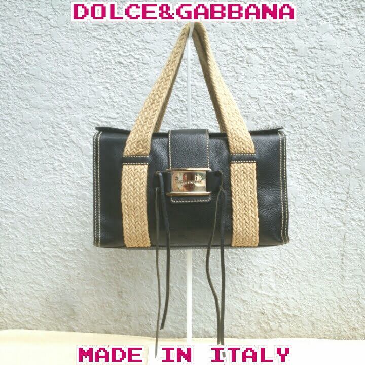 美品/ドルチェアンドガッバーナDOLCE&GABBANA/ドルガバ/レザー/ハンドバッグ/トートバッグ/黒/