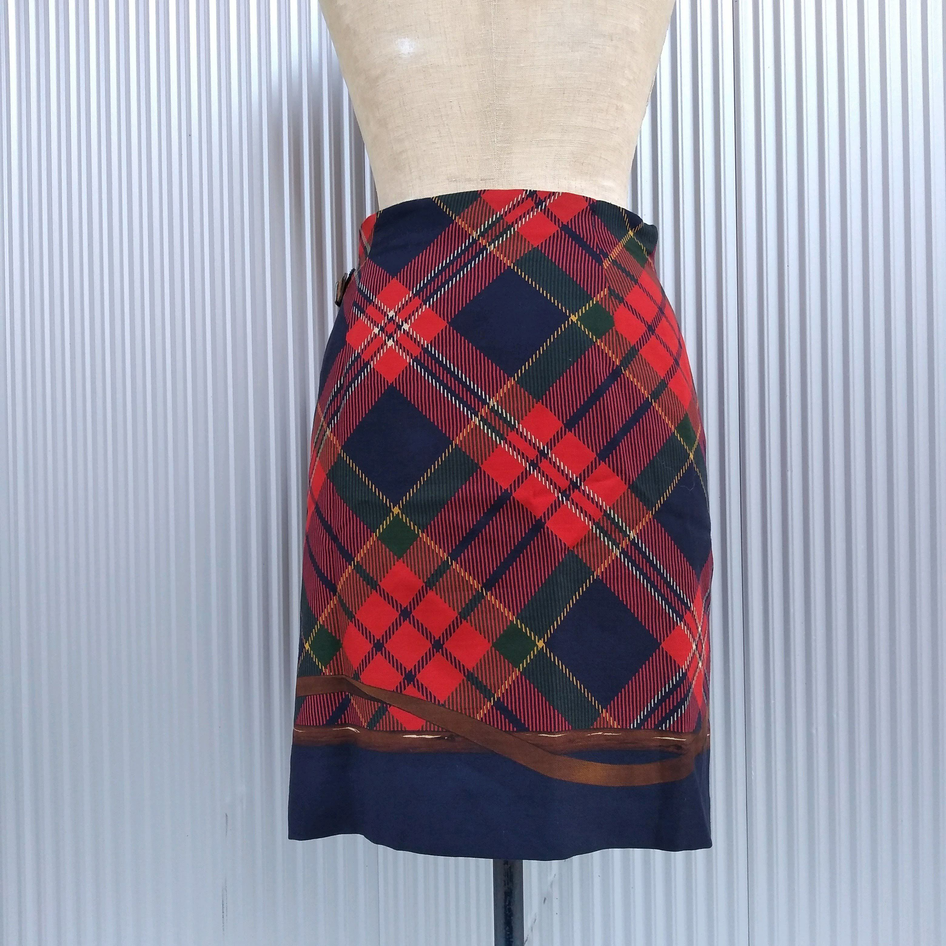【90s/USA製】新同/ラルフローレンRALPH LAUREN/ビンテージ/ヴィンテージ/チェック柄/鹿/巻きスカート/14/N0726H0002/