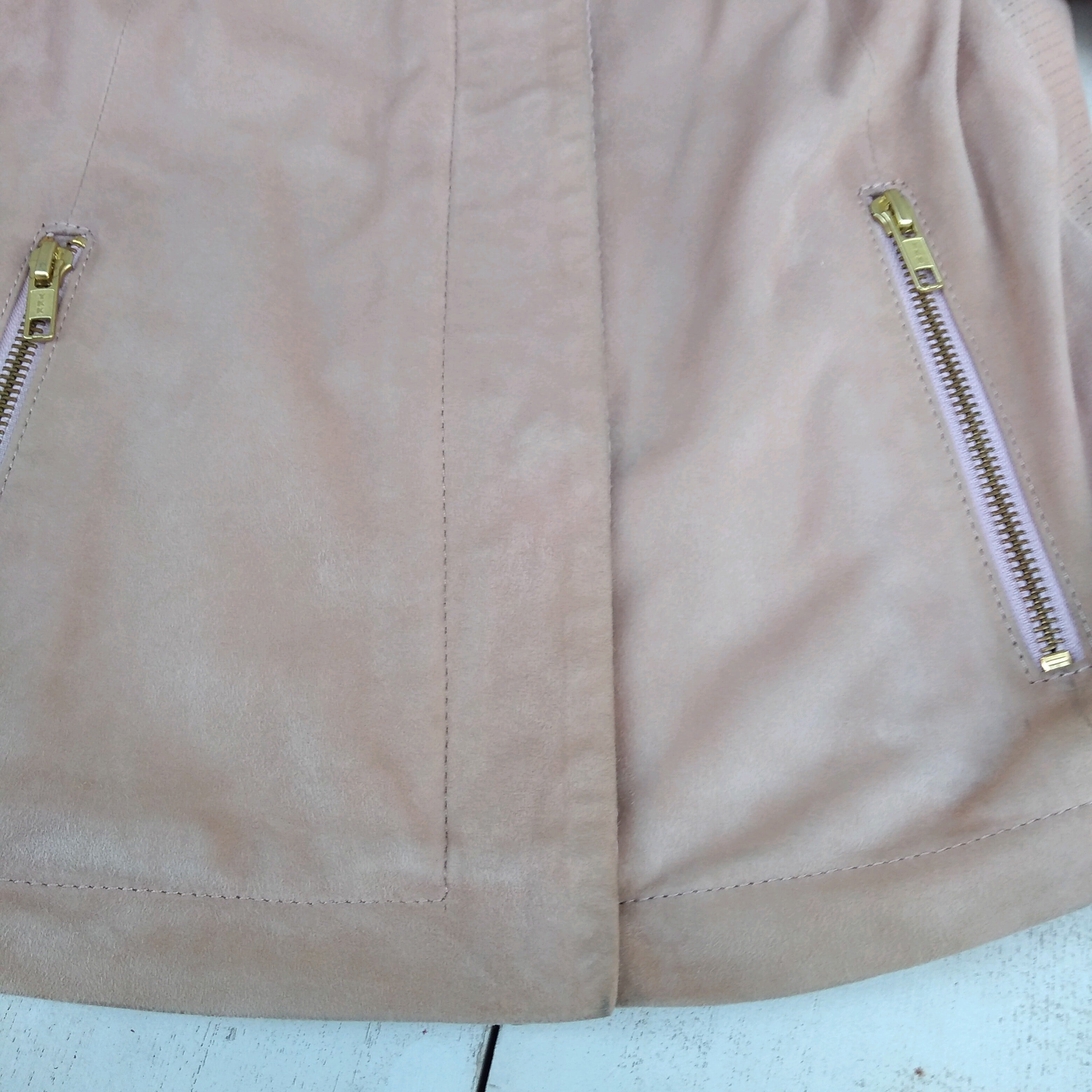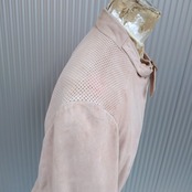 【国内正規品】マダムアパリMADAME A PARIS/山羊革ヌバック×水玉シルク/レザーブルゾン/シングル/ライダースジャケット/38/ピンクベージュ/