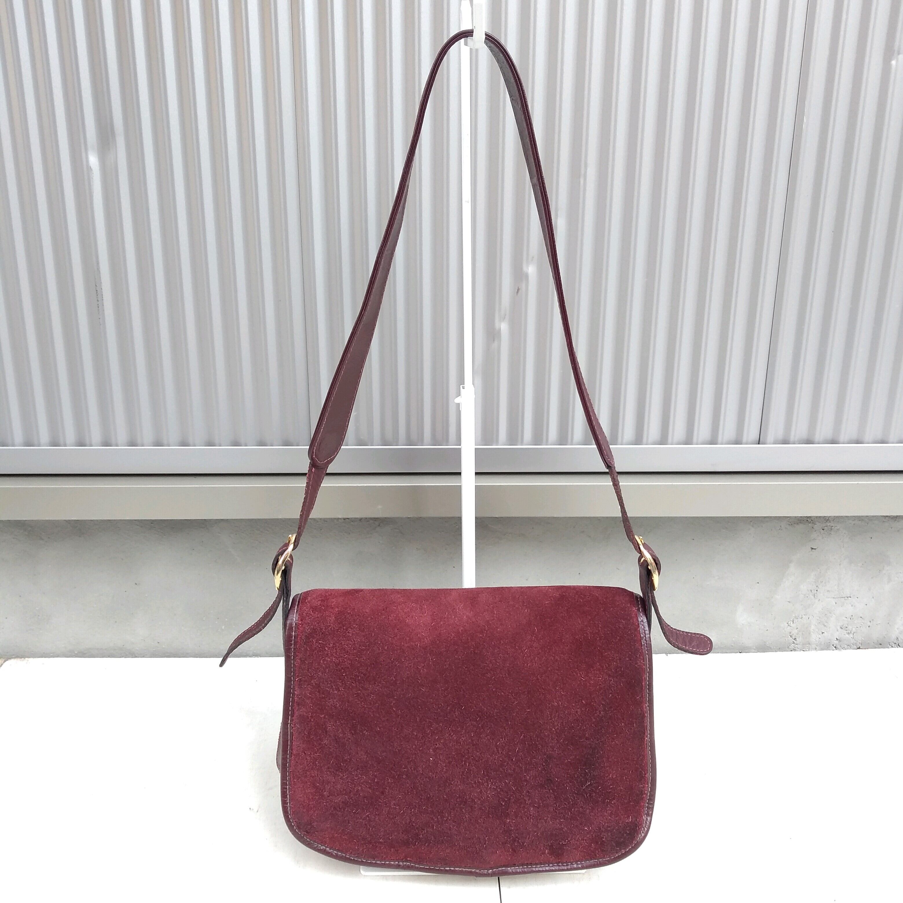 イタリア製■ランバンLANVIN/ビンテージ/ヴィンテージ/スウェード×レザー/ショルダーバッグ/ボルドー/ワインレッド/