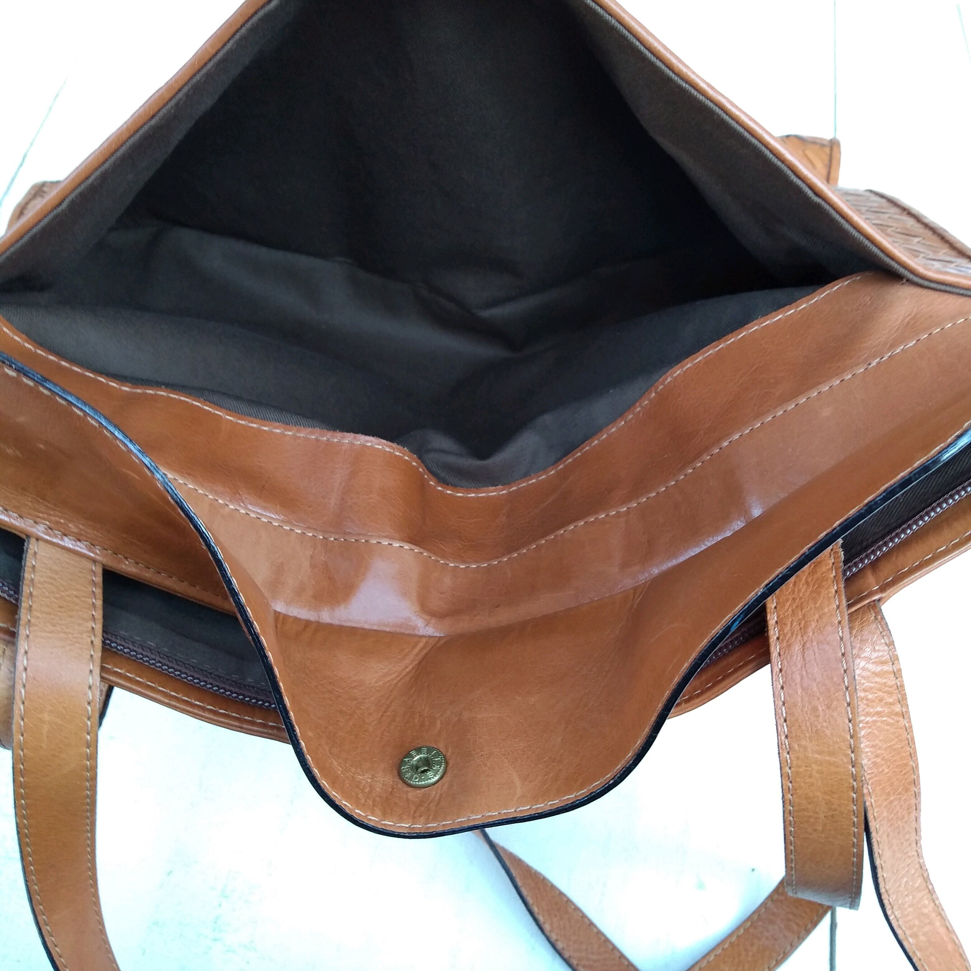 used/古着/unknown/ビンテージ ヴィンテージ/本革/レザー/イントレチャート/メッシュ/トートバッグ/茶/