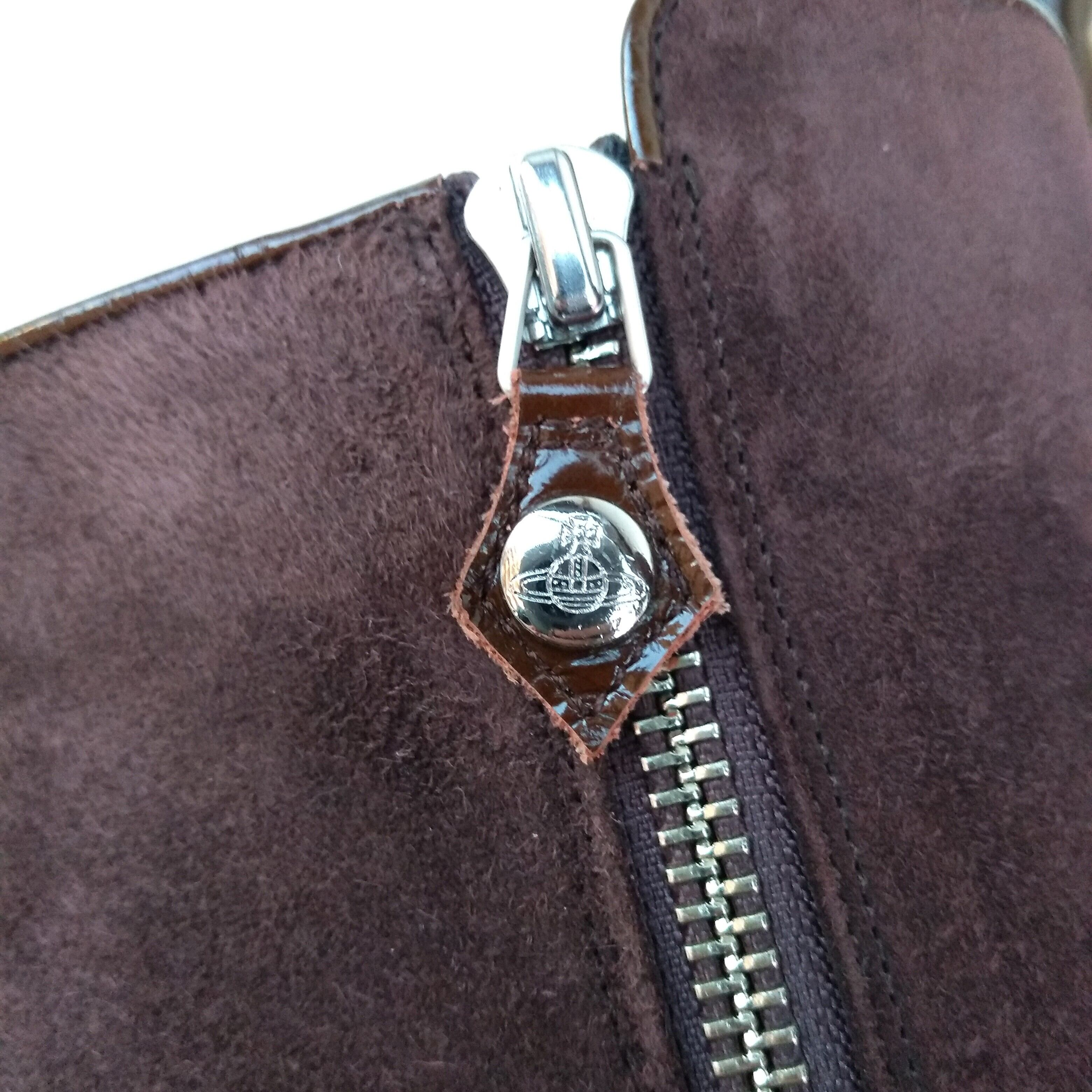 美品/VW/ヴィヴィアンウエストウッドVivienne Westwood/サイドジップ/ヌバック×レザー/ロングブーツ/茶/23.5/36/NL25MT0993/