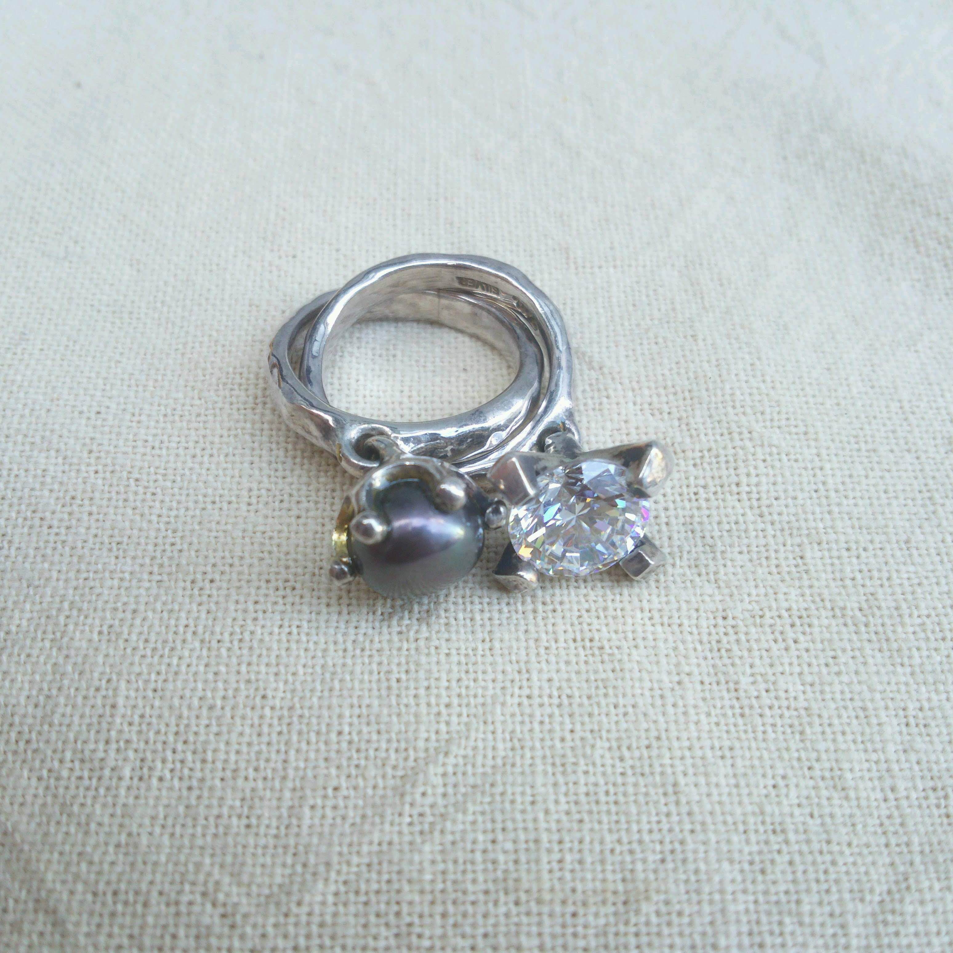 イーエムe.m./em/ジルコニア付/シルバー/2連/リング/指輪/8.5号/9号/