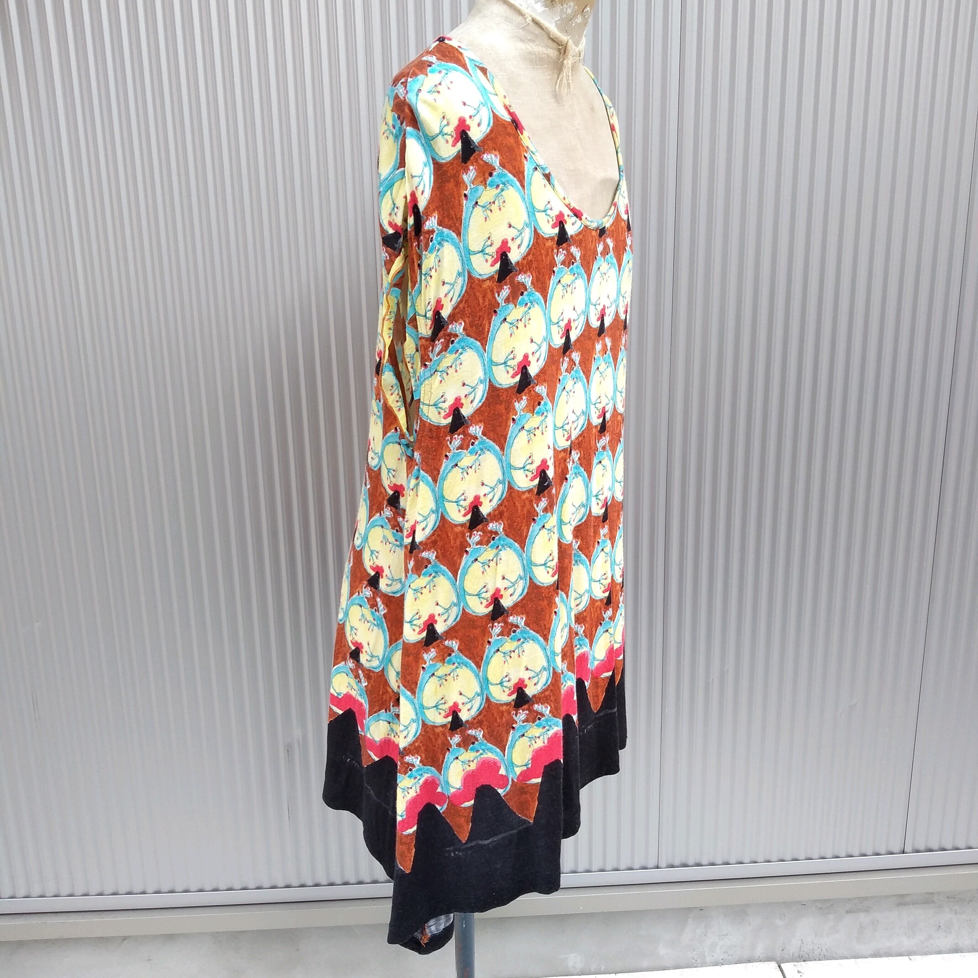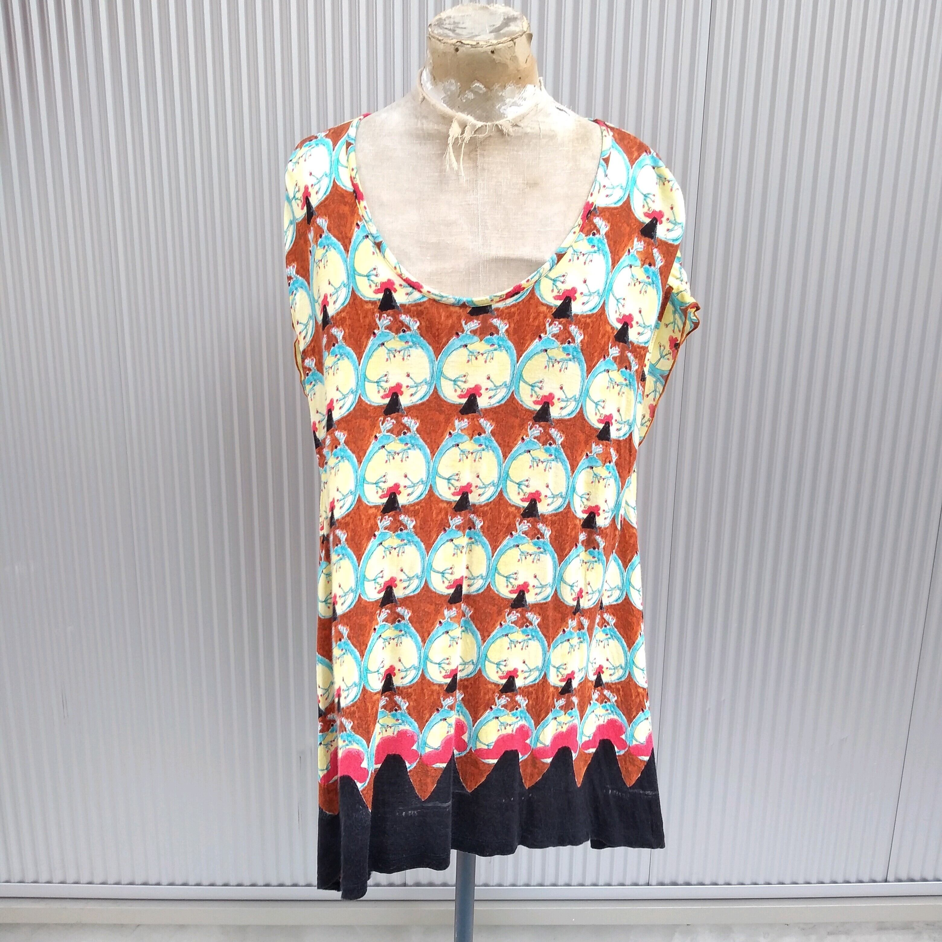 美品/ツモリチサトtsumori chisato/爬虫類/ヤモリ/柄物/カットソー/2/茶/