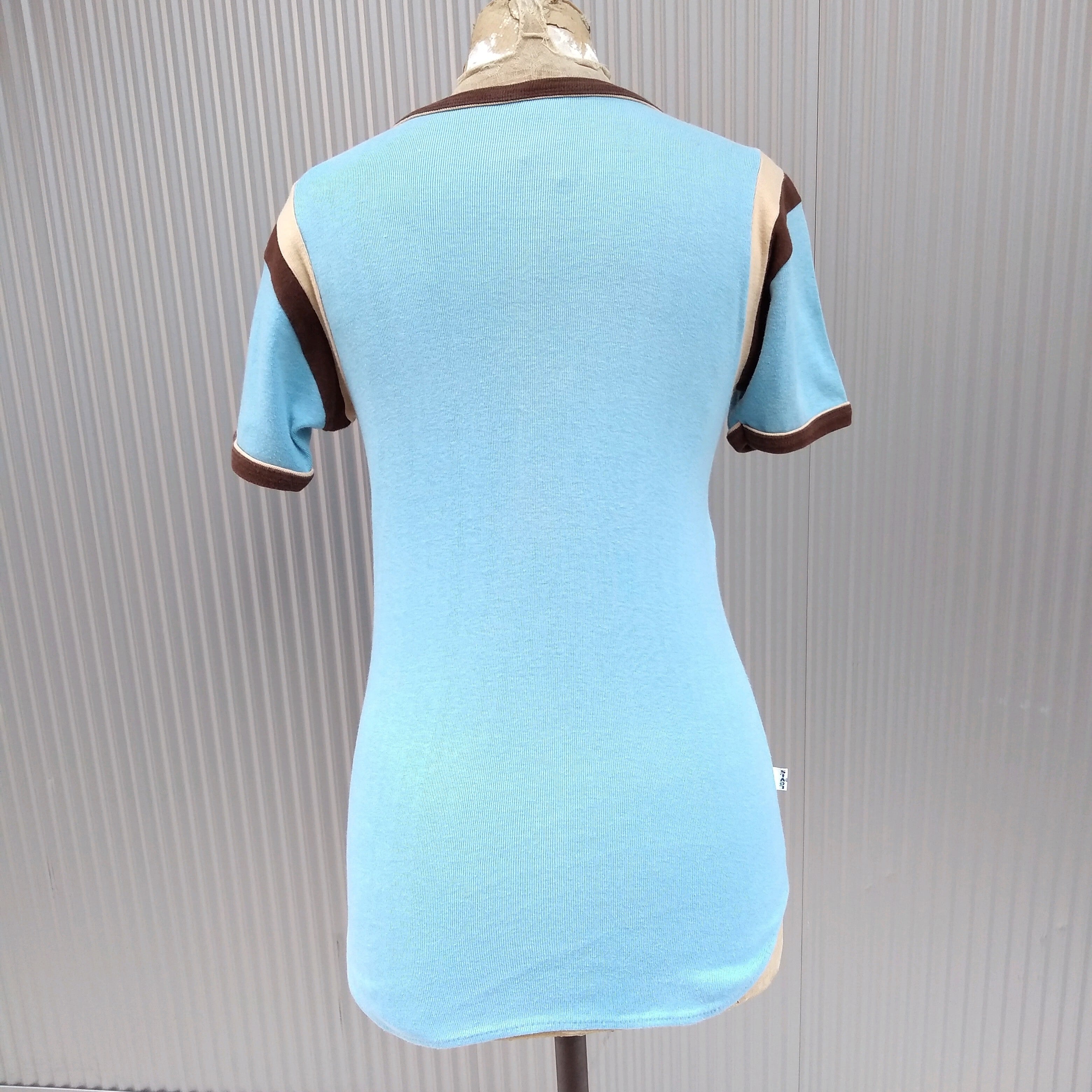 【70s】リーバイスLevis/袖刺繍ロゴ入/白タブ/白タグ/ビンテージ/ヴィンテージ/タイト/ストレッチ/ニットTシャツ/M/水色/