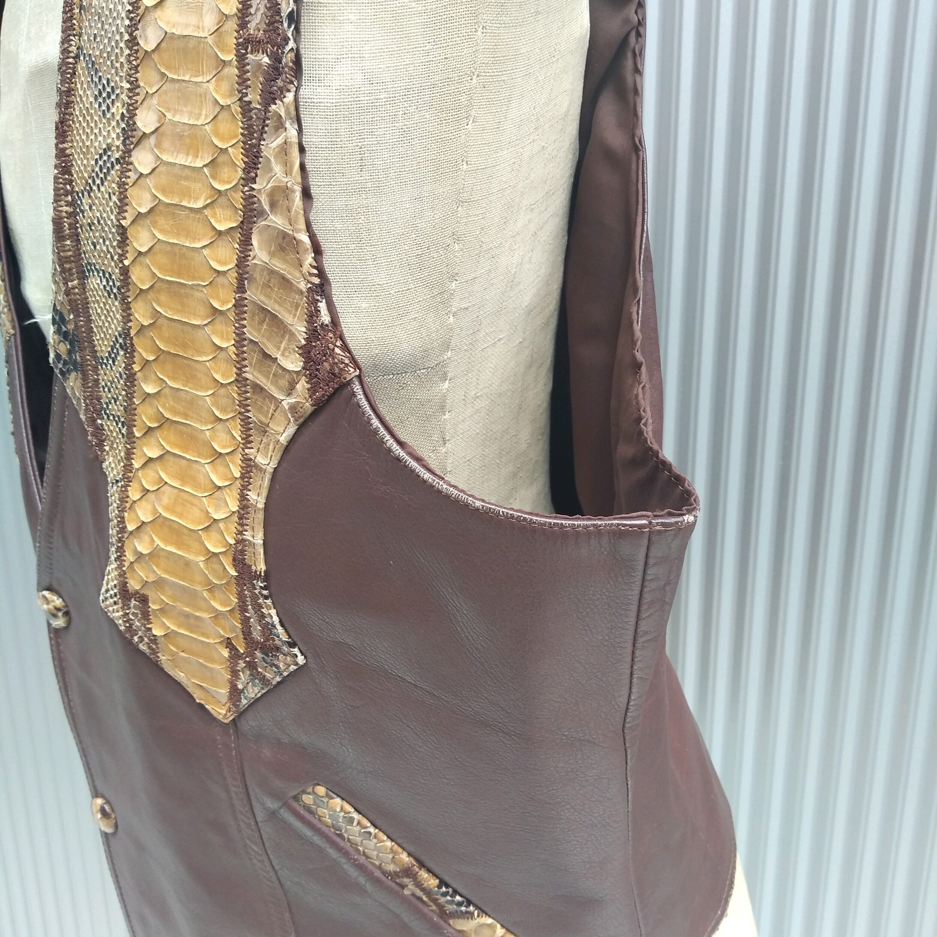 used/古着/unknown/アメカジ/バイカー/ウエスタン/牛革×蛇革/レザー/ベスト/ジレ/40/茶/