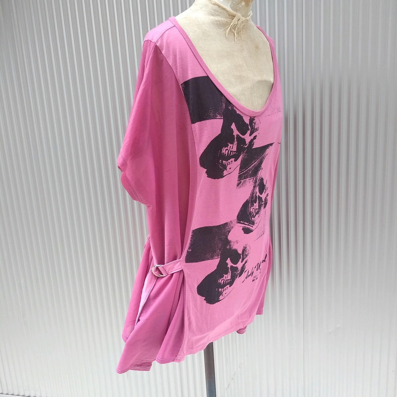 アンディーウォーホル バイ ヒステリックグラマーAndy Warhol by HYSTERIC GLAMOUR/サイドベルト付/スカル/髑髏/骸骨/ドクロ/変形/切替/カットソー/F/ピンク/