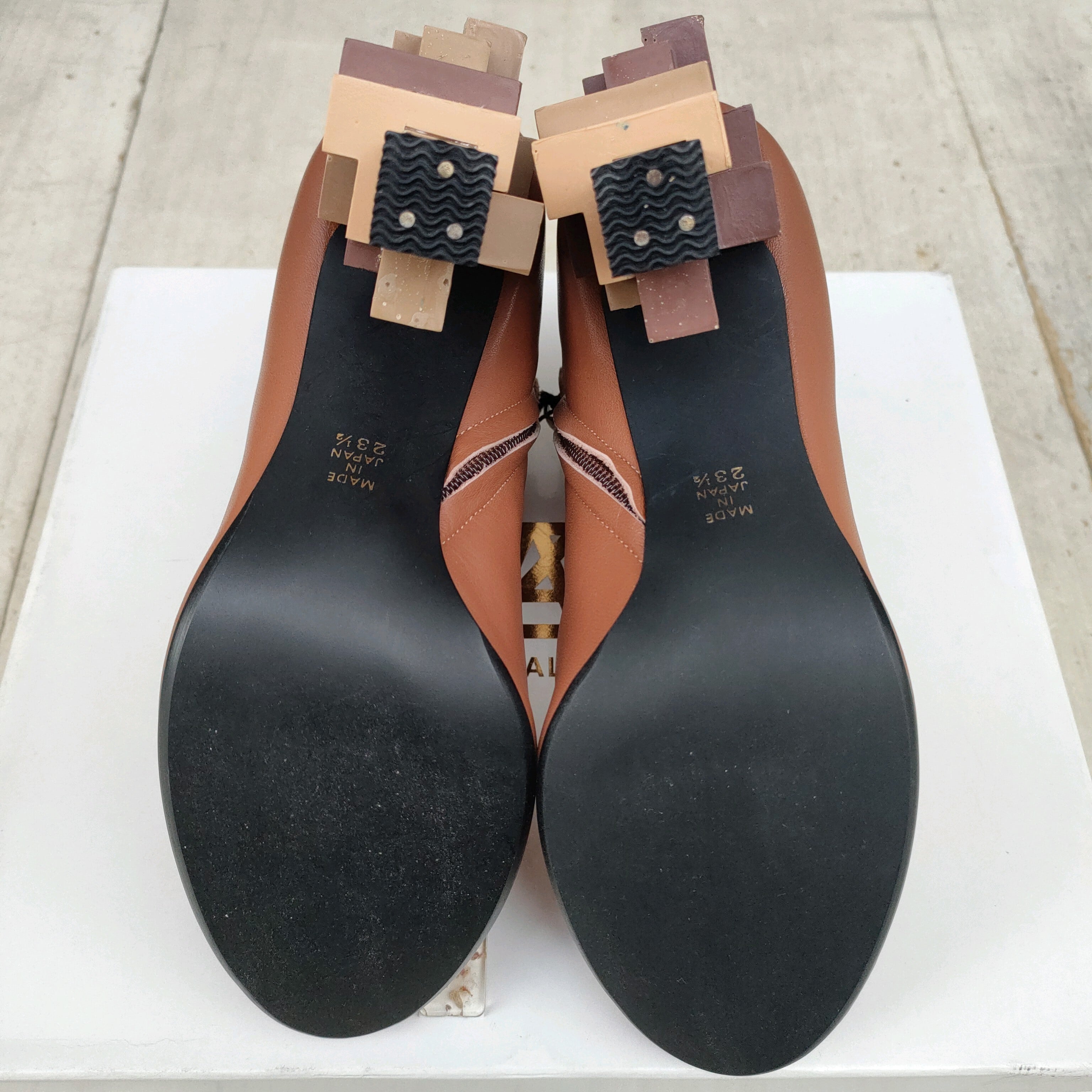 ◯【付属有/唯一無二/2013SS】新品/ミッドウエスト扱/アンリアレイジANREALAGE/デッドストック/低解像度/レザー/ハイヒール/デザイン/サイドジップブーツ/ショートブーツ/茶/23.5/定価57750/O0715SD/4914/