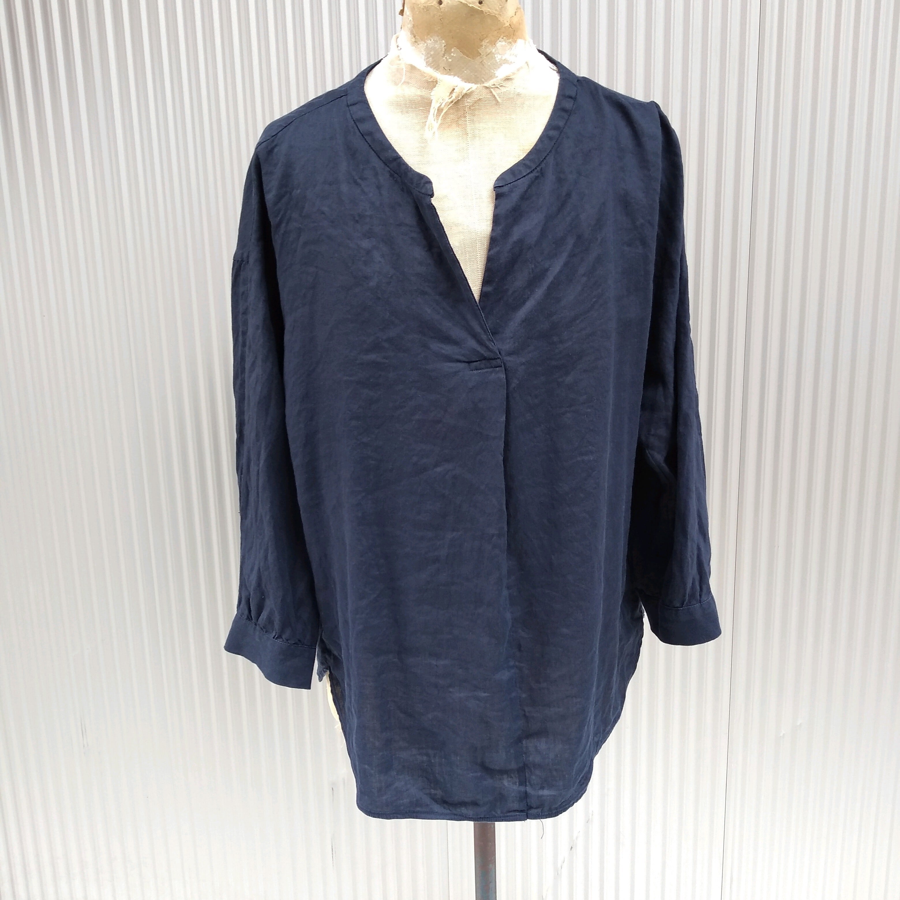 【2020SS】美品/プラステPLST/リネンミックス/ボリュームスリーブ/スキッパー/ブラウス/M/ネイビー/O0707/