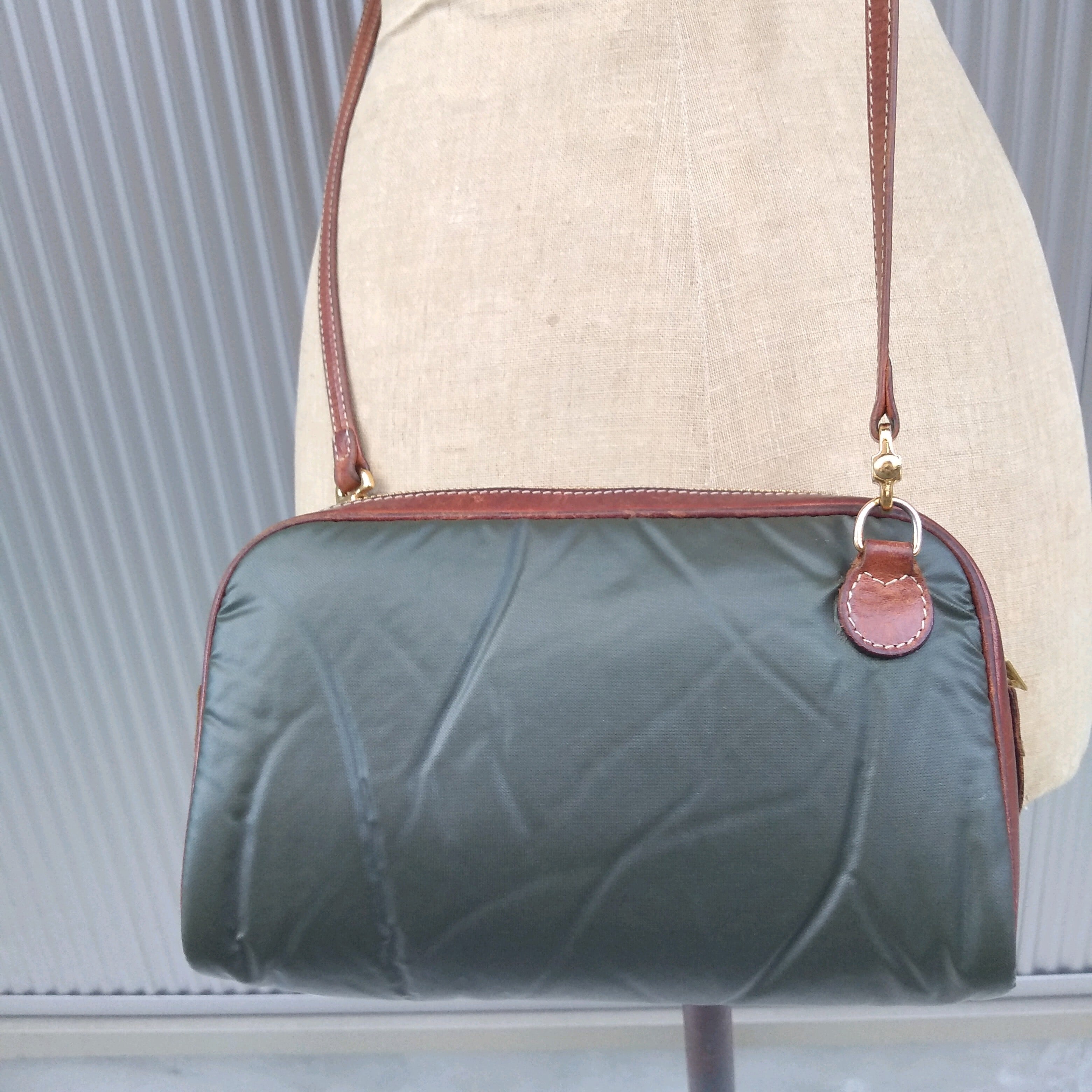 ハンティングワールドHUNTING WORLD/ビンテージ/ヴィンテージ/古着/バチュークロス/バチューサーパス×レザー/ショルダーバッグ/カーキ/茶/M1103F3/