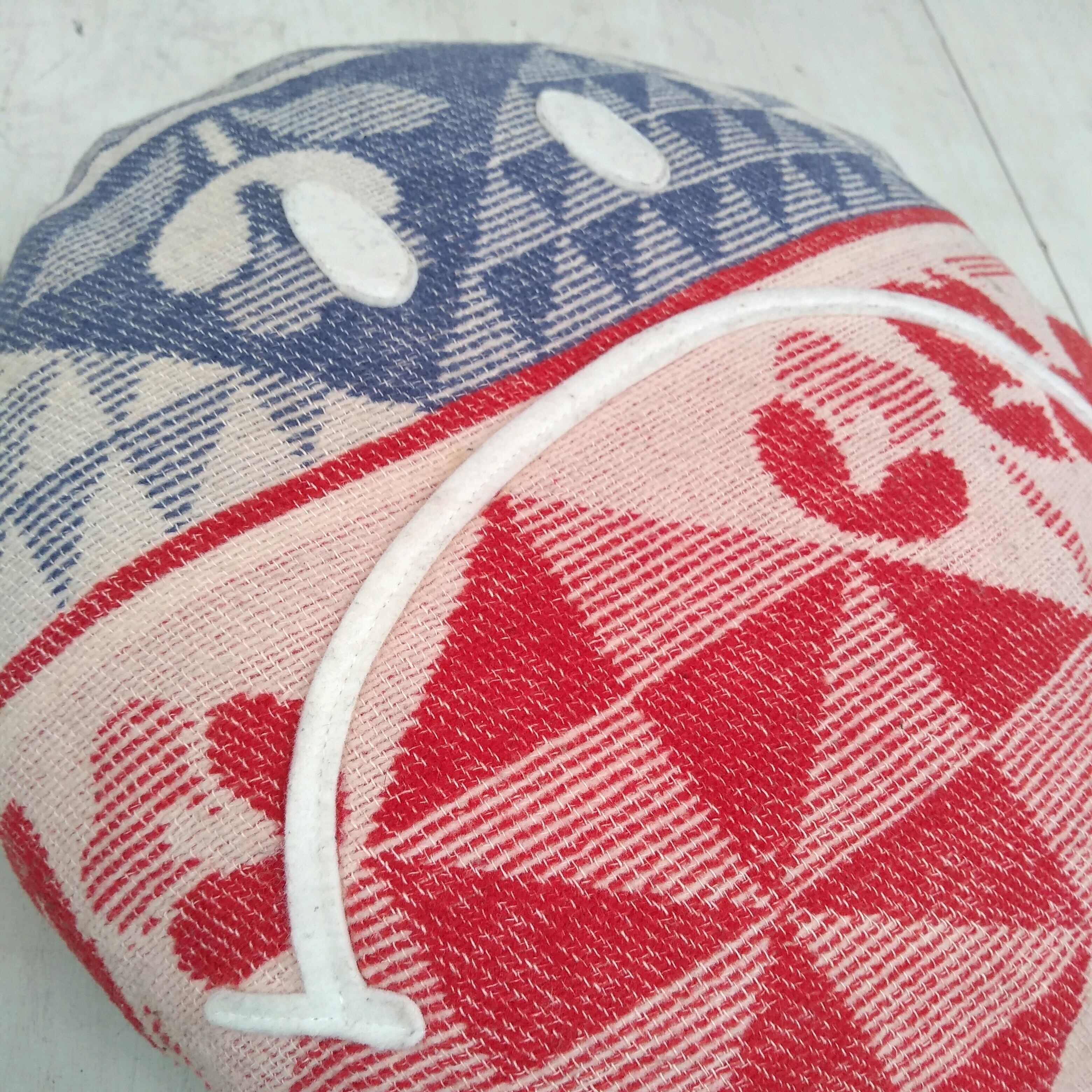 【ビンテージ生地】ハンドライトHAND LIGHT × ジャクソンマティスJACKSON MATISSE/リバーシブル/リメイク/ハンドメイド/ヴィンテージファブリック/丸/スマイル/ニコちゃん/クッション/O0913K0031/