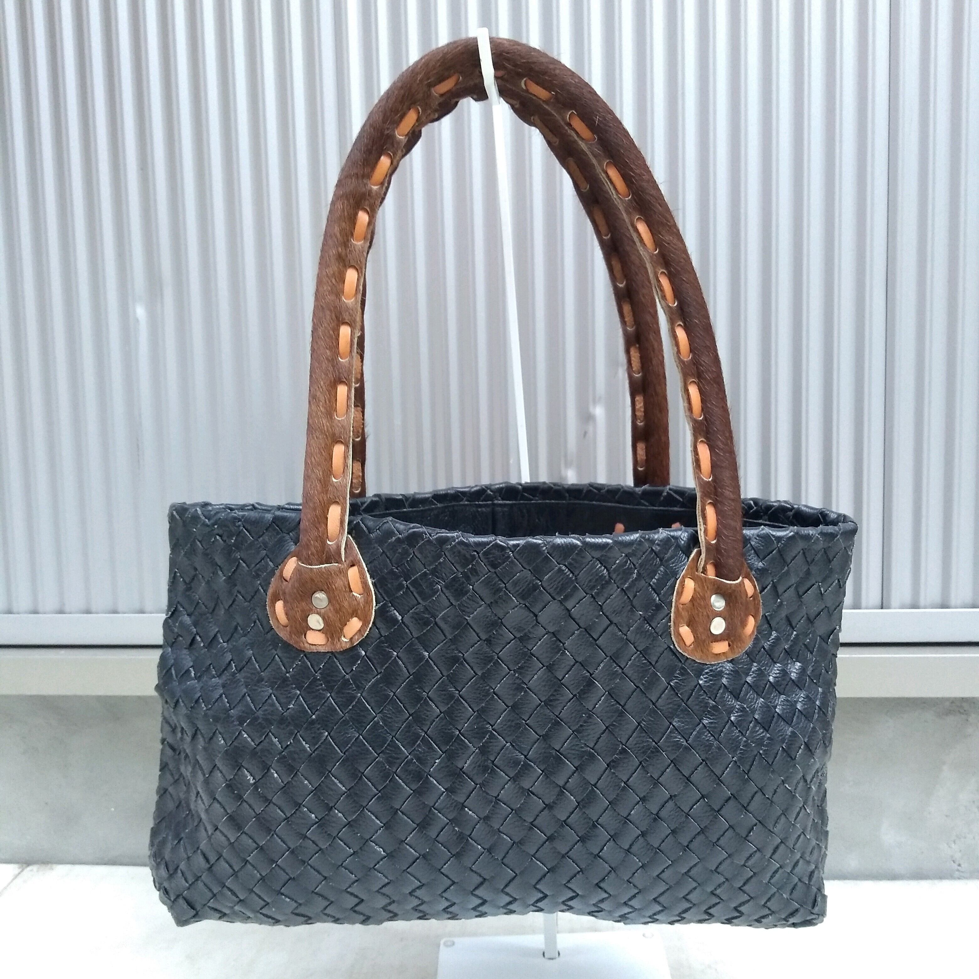 美品/ロビタrobita/イントレチャート/メッシュ/レザー/ホースヘア/馬毛/トートバッグ/黒/O0915FB/