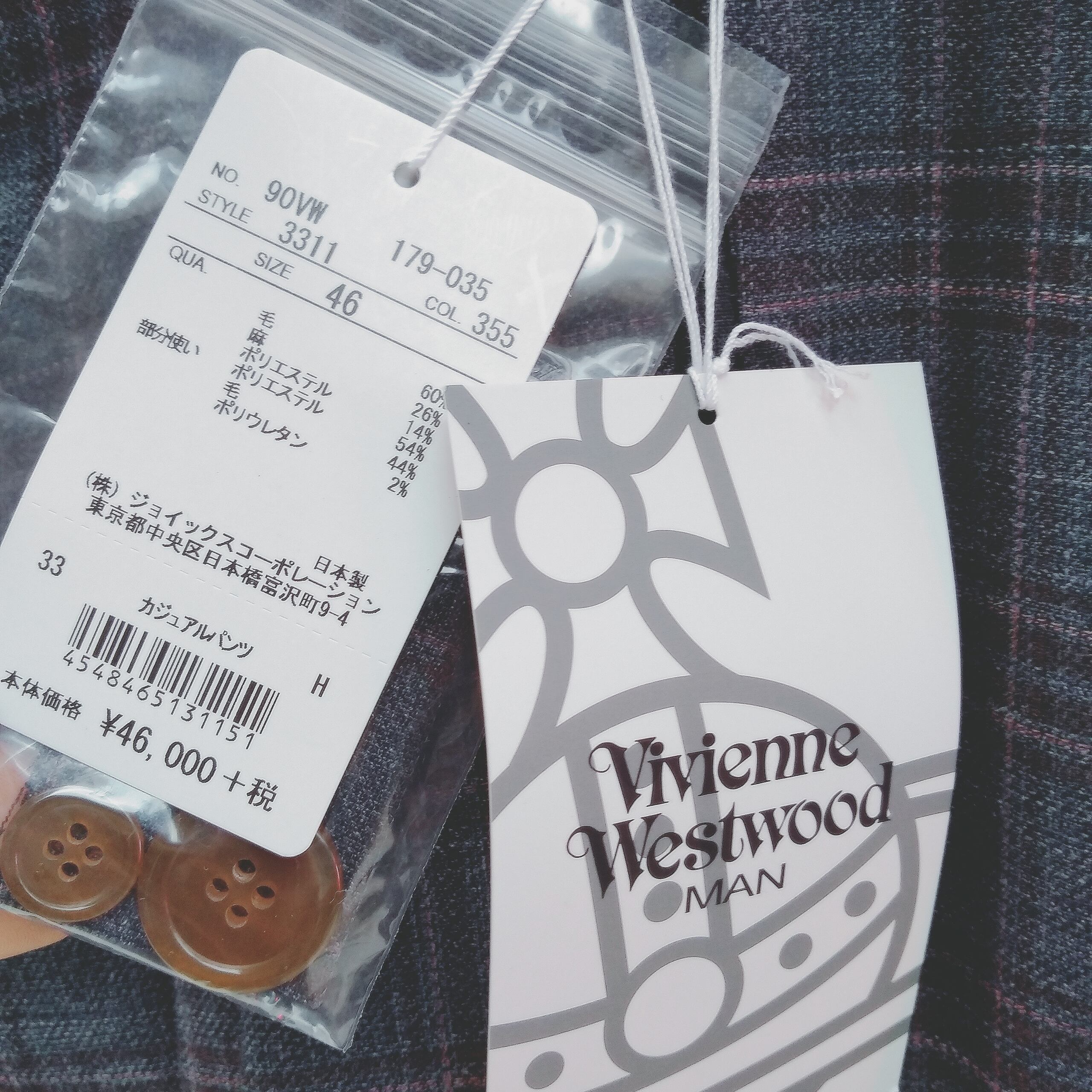 新品/VW/ヴィヴィアンウエストウッドマンVivienne Westwood MAN/ウール/チェックパンツ/スラックス/46/定価50600/O0911YV12/