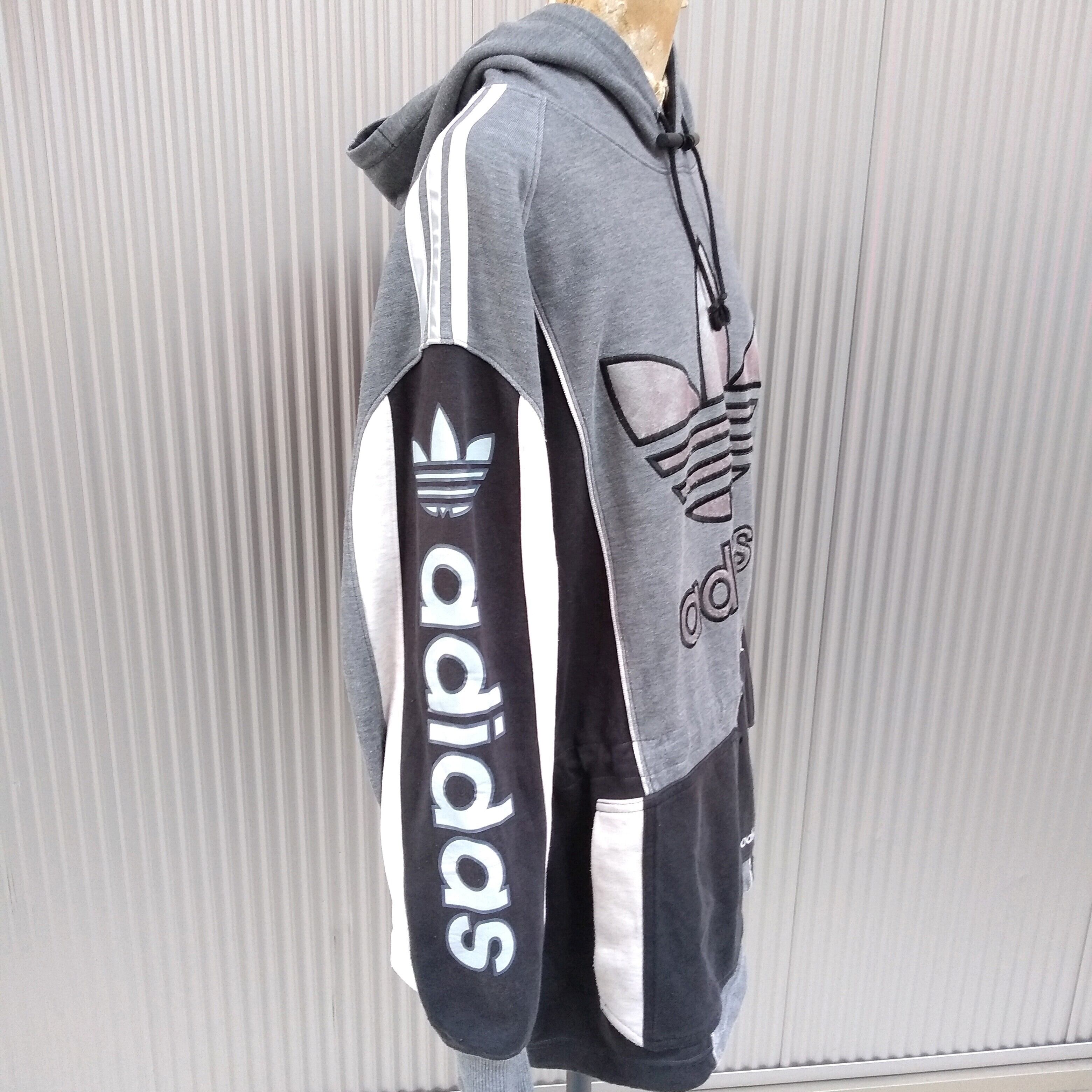 【90s】アディダスadidas/ビンテージ/ヴィンテージ/古着/デサント/ビッグサイズ/ビッグシルエット/トレフォイル/ラグラン/スウェットパーカー/フーディー/O0921/