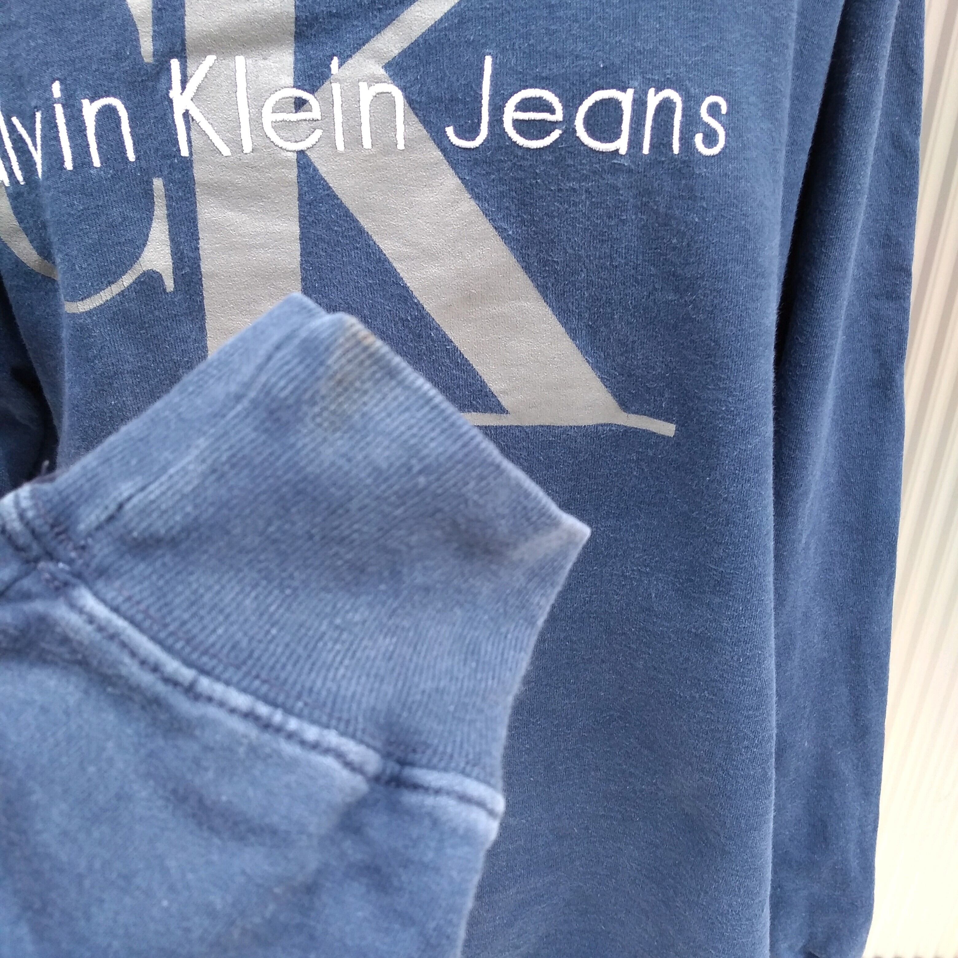【90s/カナダ製】ck/カルバンクライン ジーンズCalvin Klein Jeans/ビンテージ/ヴィンテージ/古着/刺繍ロゴ/ビッグロゴ/スウェット/L/ネイビー/100310/