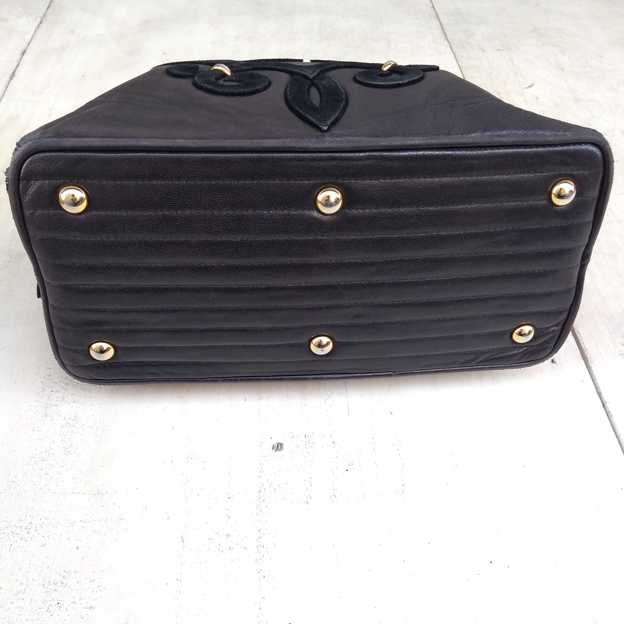 【オートクチュール】アヌックオブカンヌANOUK OF CANNES/ビンテージ/ヴィンテージ/ヨーロッパ古着/ラムスキン/レザー/ボストンバッグ/ハンドバッグ/ネイビー/O1024S4/