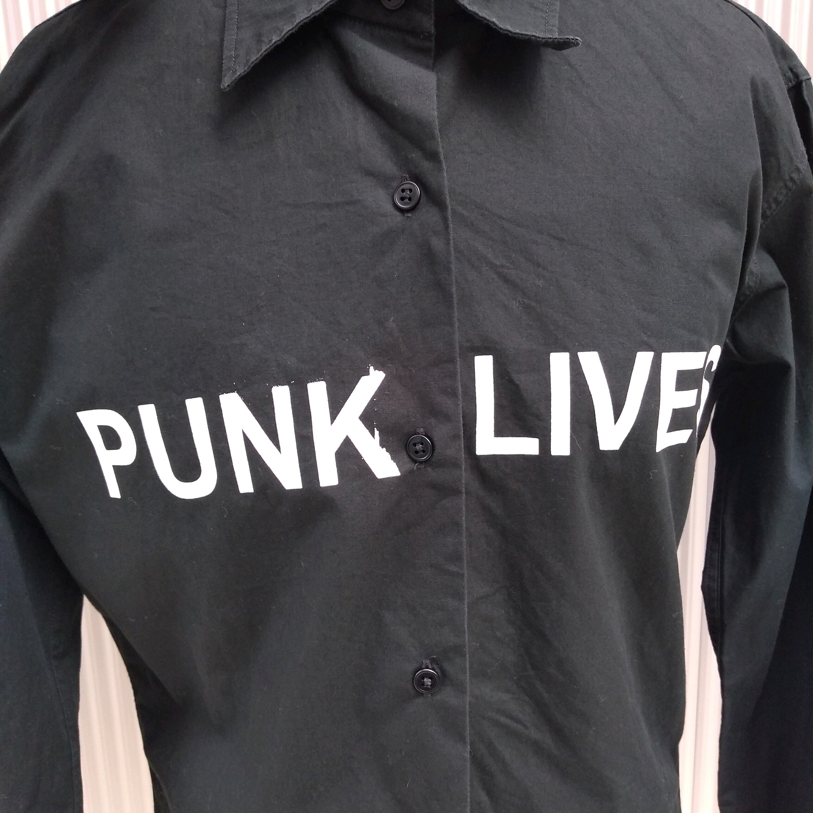 【フランス製】美品/アニエスベーagnis b./ユニセックス/PUNK LIVES/ロゴ/長袖/シャツ/38/黒/O1107H9/