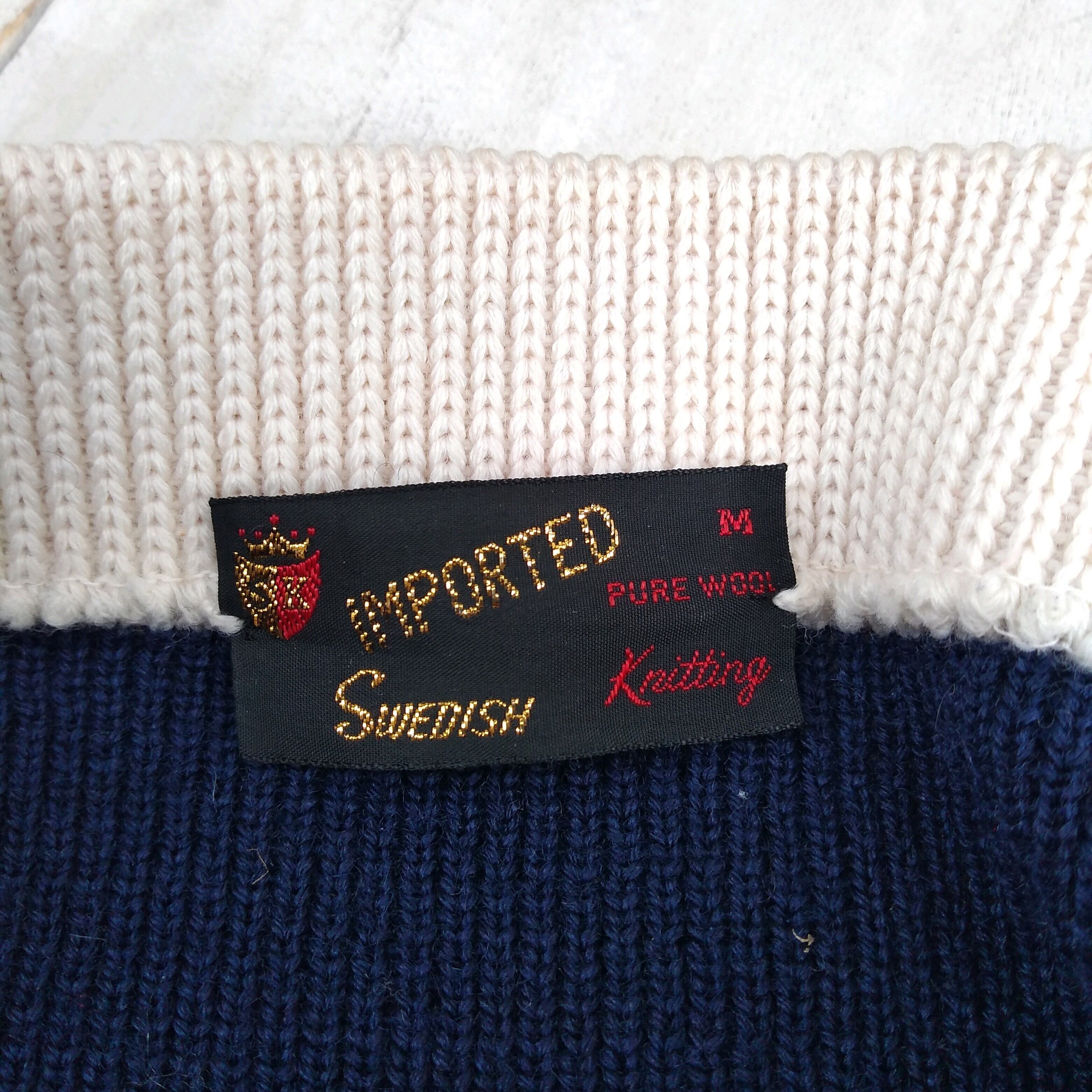 swedish knitting/ビンテージ/ヴィンテージ/古着/ウール/スラッシュドネック/スキーニット/セーター/M/ネイビー/O1211MBO/