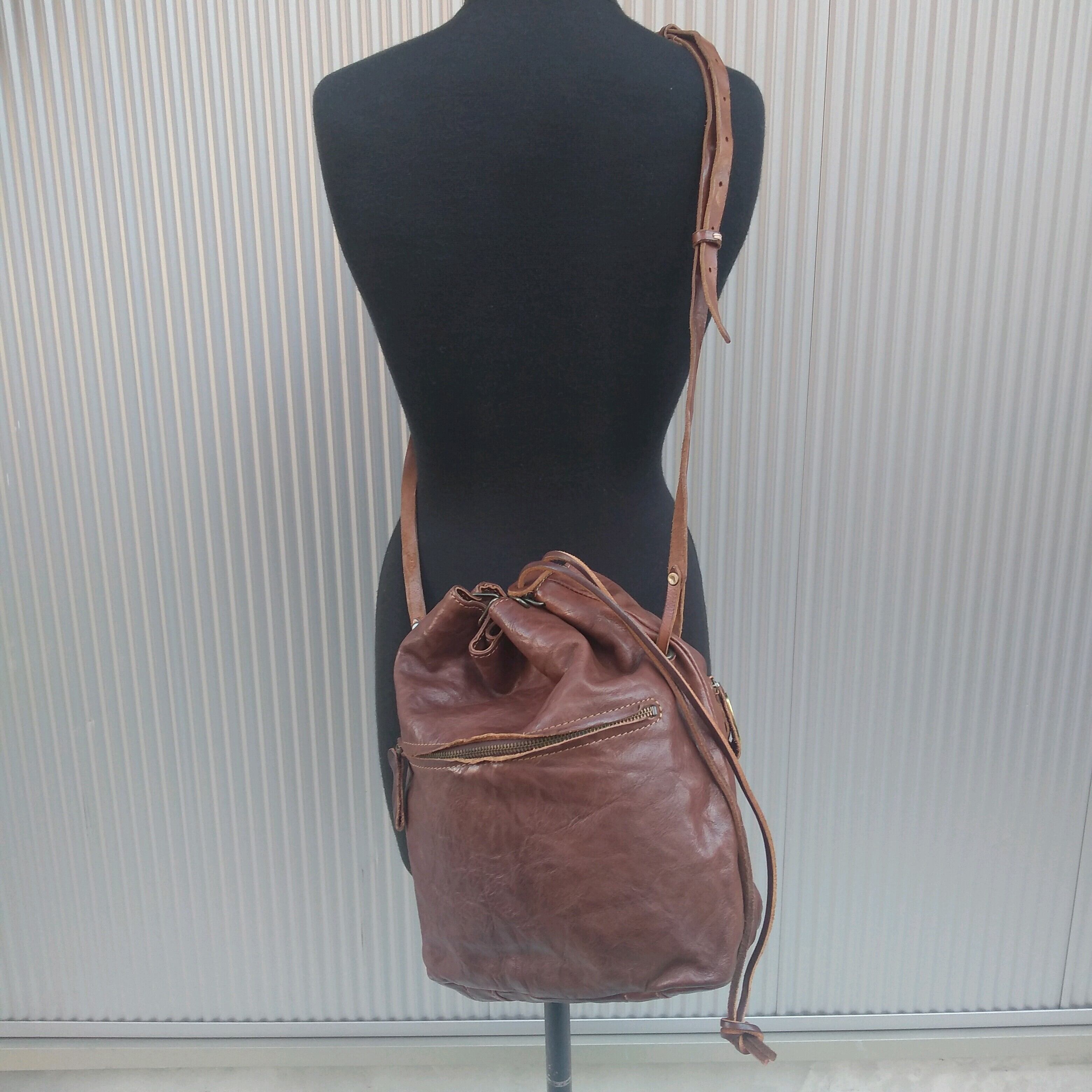 【2way】アナックANNAK/レザー/巾着/フラップ/ショルダーバッグ/茶/P0111FSS6/