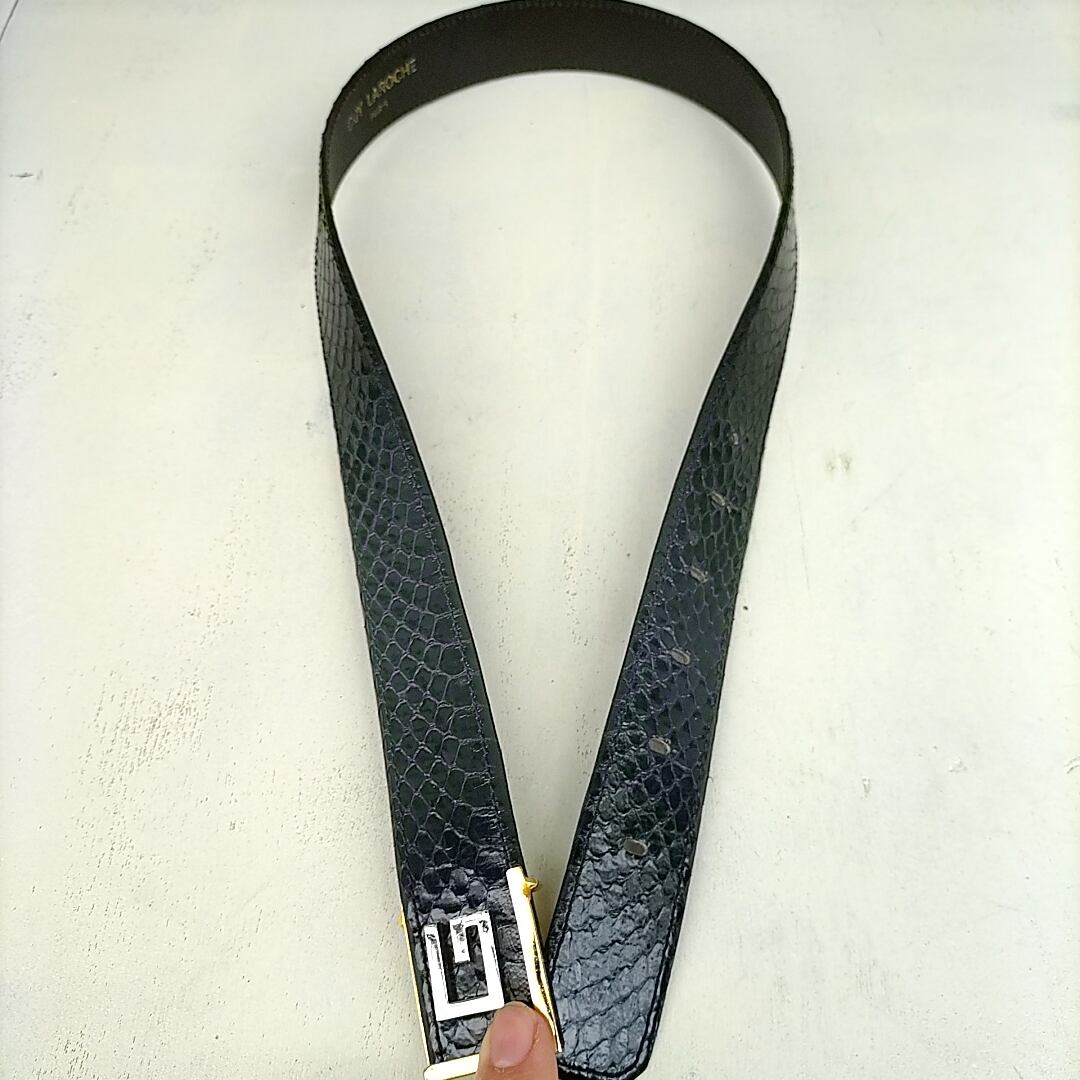 【フランス製】美品/ギラロッシュGuy Laroche/ヴィンテージ/ビンテージ/ヨーロッパ古着/蛇革/ヘビ革/エキゾチックレザー/ベルト/28/70/ネイビー/P0430MTF1/