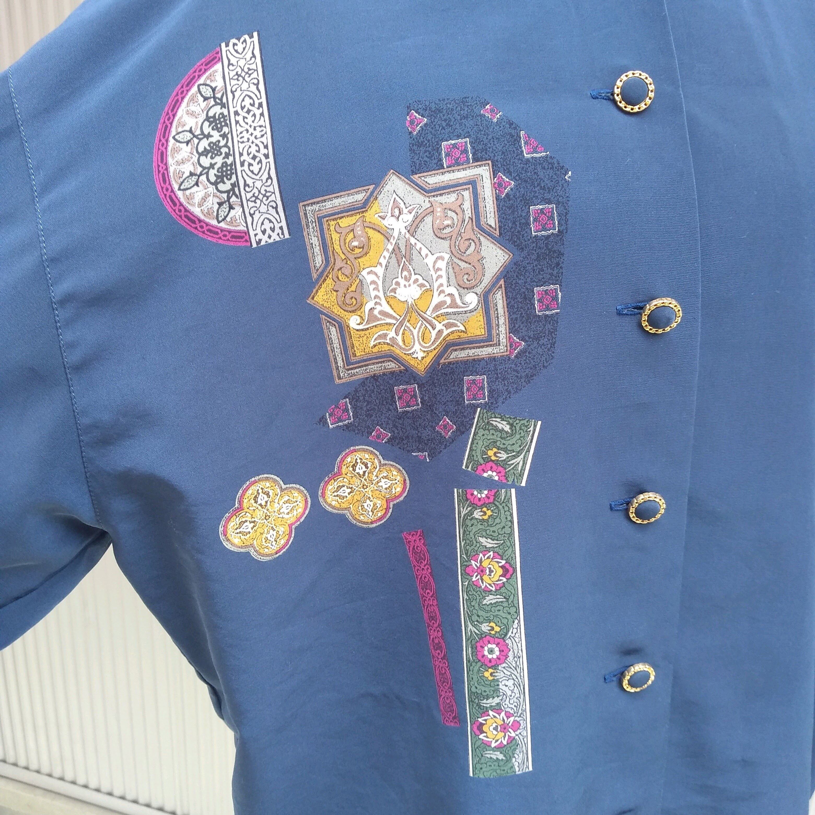 【80s】used/unknown/ビンテージ/ヴィンテージ/古着/レトロ/ビッグサイズ/ビッグシルエット/ヨーロッパ/ヨーロピアン/ブラウス/ネイビー/