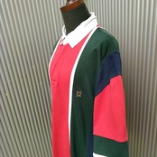 【90s】トミーヒルフィガーTOMMY HILFIGER/ビンテージ/ヴィンテージ/ビッグサイズ/ビッグシルエット/長袖/ストライプ/ボーダー/スウェット/ポロシャツ/L/P06030001/