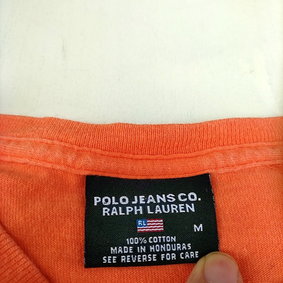 【90s】ポロジーンズ ラルフローレンPOLO JEANS CO RALPH LAUREN/ビンテージ/ヴィンテージ/古着/ビッグサイズ/ビッグシルエット/ロゴ/Tシャツ/M/オレンジ/P06108/