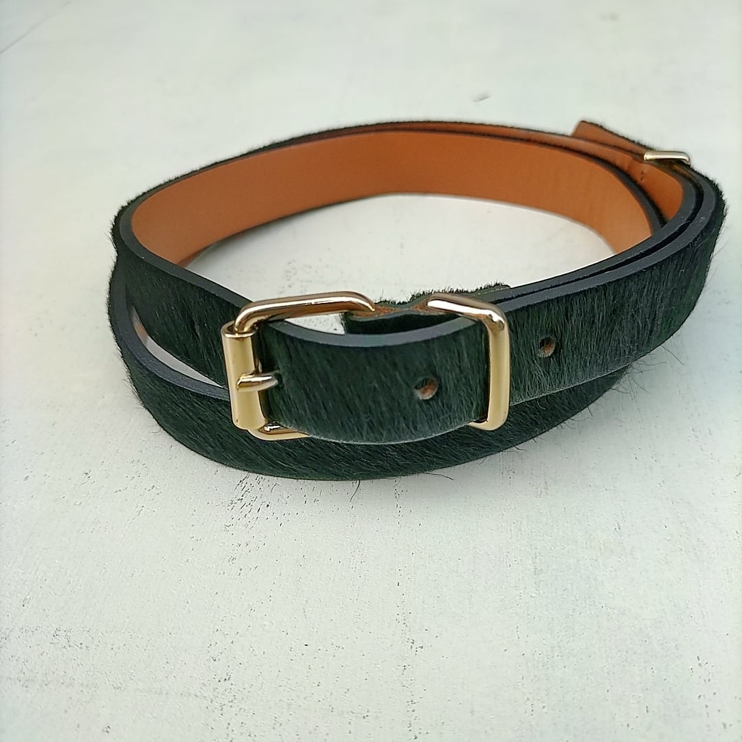 【フランス製】美品/トゥモローランド扱/メゾンボワネMAISON BOINET/91101 G/ハラコ/レザーベルト/80/32/黒/P0612I/