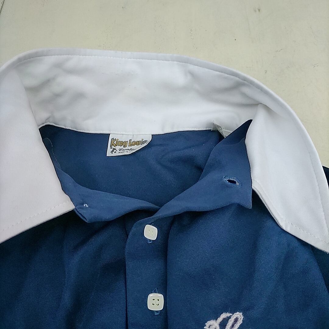 【70s/USA製】キングルイKing Louie/ビンテージ/ヴィンテージ/古着/ボウリングシャツ/ボーリングシャツ/L/ネイビー/P06180021/