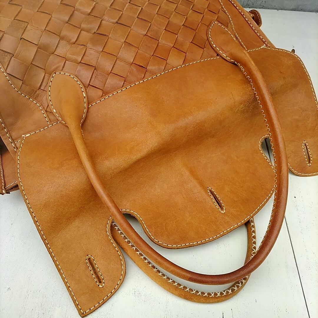 used/unknown/牛革/イントレチャート/レザー/トートバッグ/茶/P0622AUU8591/