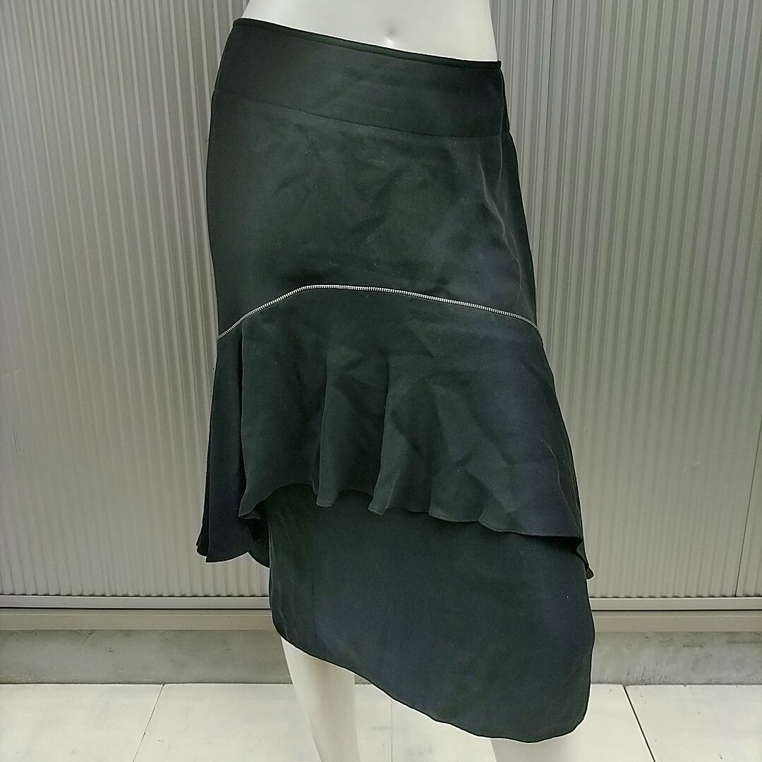 【国内正規品】ユナイテッドアローズ扱/アレキサンダーワンALEXANDER WANG/飾りジップ/シルク100/ティアードスカート/0/黒/O05128/