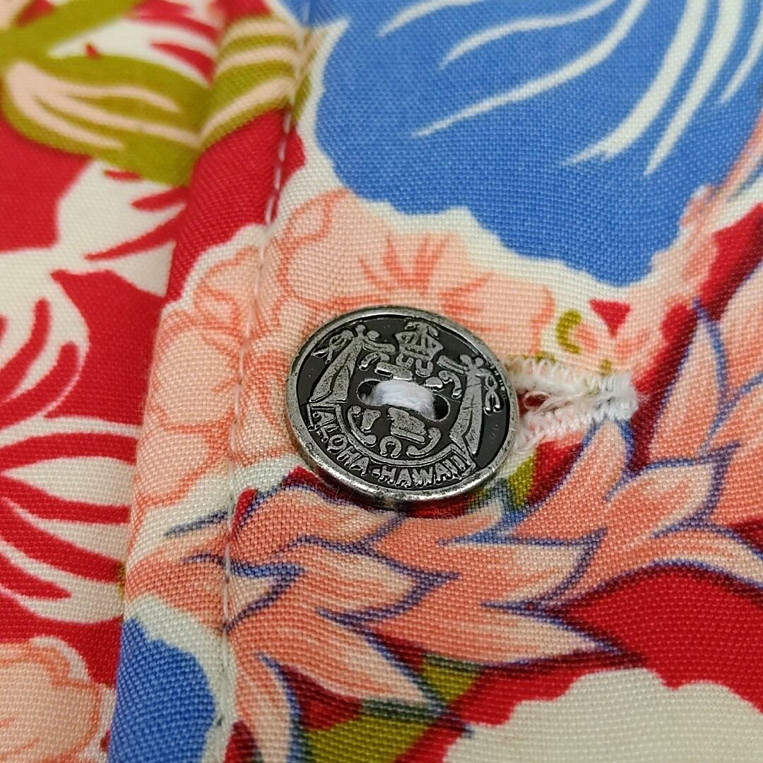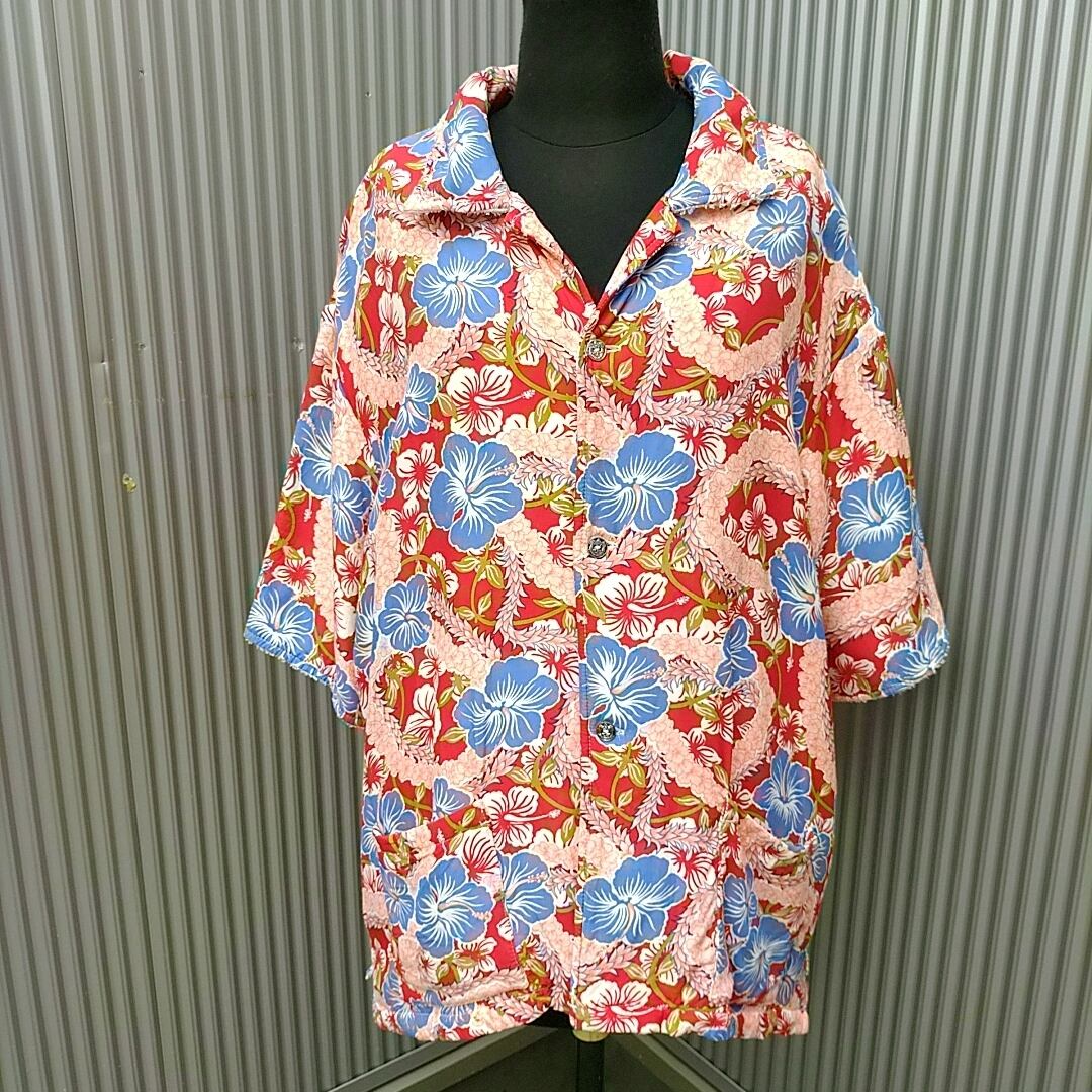 【内パイル】used/unknown/ビンテージ/ヴィンテージ/古着/ボックスシルエット/ビッグサイズ/メタルボタン/ハイビスカス/ビーチシャツ/ハワイアンシャツ/アロハシャツ/