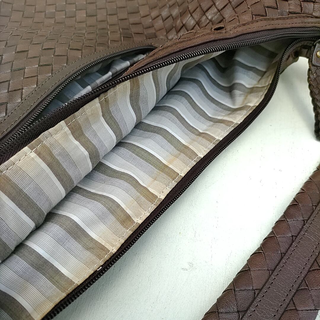 美品/エスティーヌESTINE/イントレチャート/メッシュ/牛革/羊革/レザー/ショルダーバッグ/ホーボーバッグ/茶/P0710KB3/