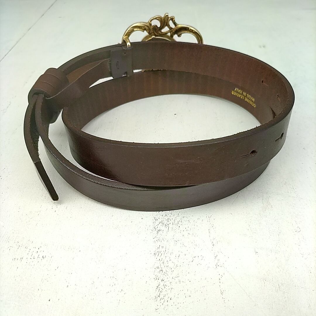 【イタリア製】美品/used/unknown/ヨーロッパ古着/牛革/レザー/額縁/豪華/ゴージャス/バックル/レザーベルト/茶/