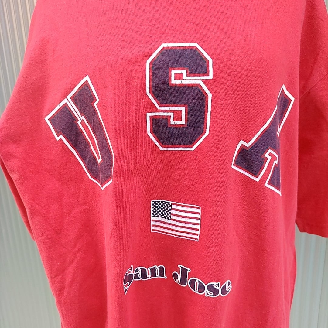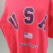 【90s/ウズベキスタン製】used/unknown/ビンテージ/ヴィンテージ/古着/ビッグサイズ/ビッグシルエット/アメリカ/USAロゴ/Tシャツ/L/赤/P07164/