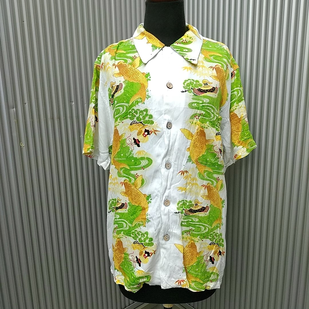 美品/unknown/Hawaiian Shirt/古着/レーヨン/鯉/和柄/ハワイアンシャツ/アロハシャツ/L/P07236/