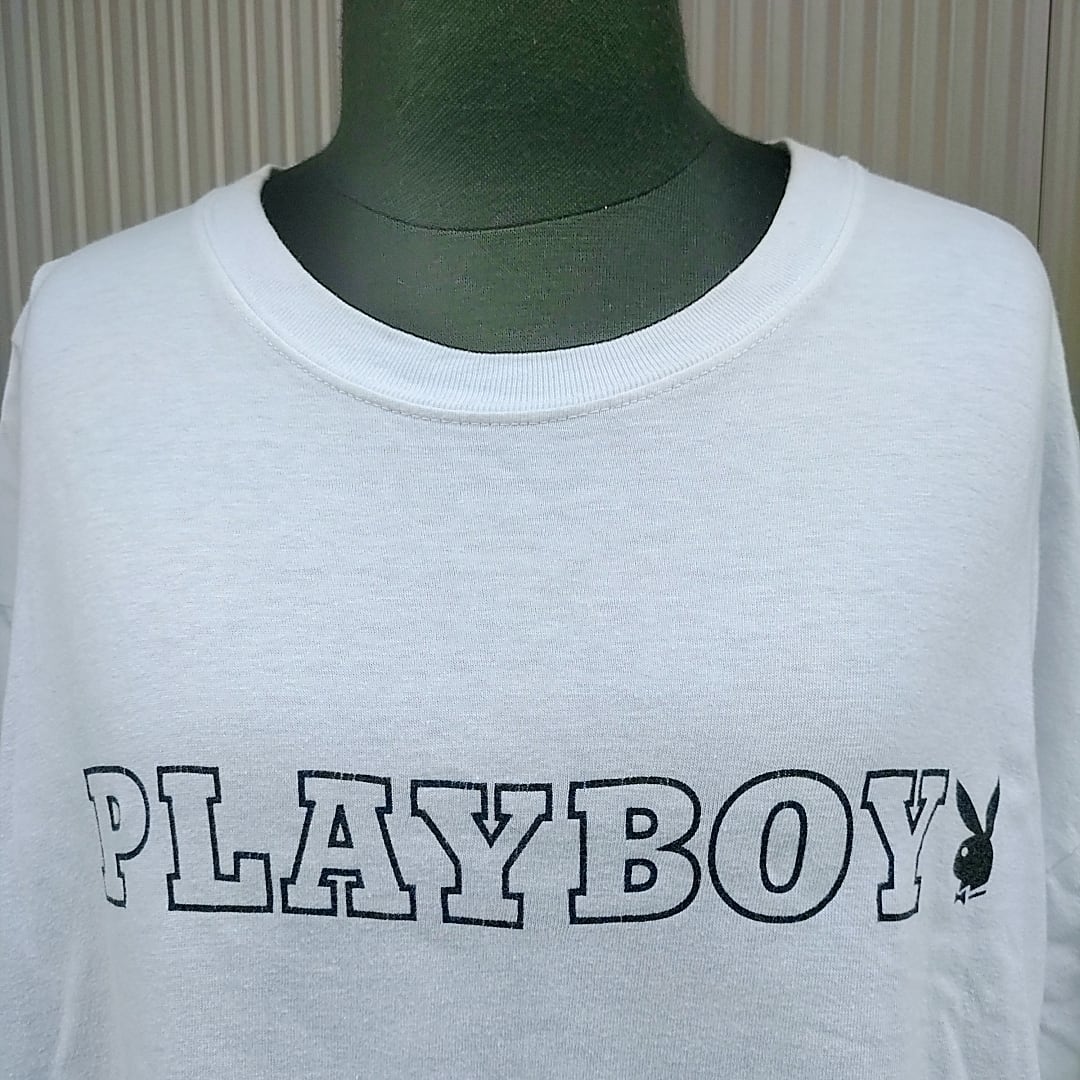 【USA製/90s】プレイボーイPLAYBOY/ビンテージ/ヴィンテージ/古着/ビッグサイズ/ビッグシルエット/ロゴ/Tシャツ/M/白/P0806/
