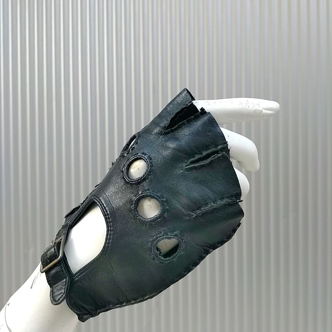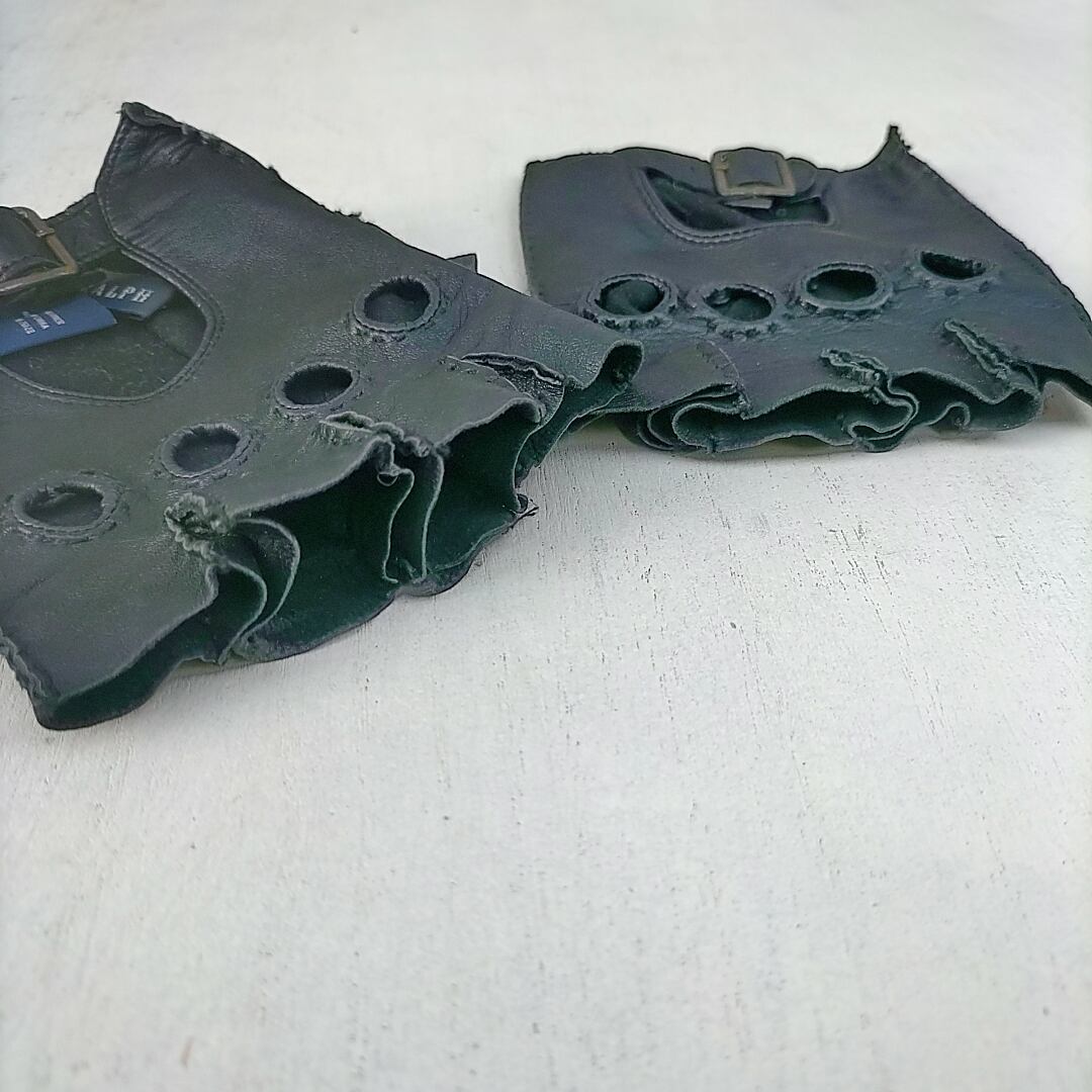 美品/ラルフローレンRALPH LAUREN/オープンフィンガー/バイカー/レザー/グローブ/手袋/7/黒/レディース/O05129/