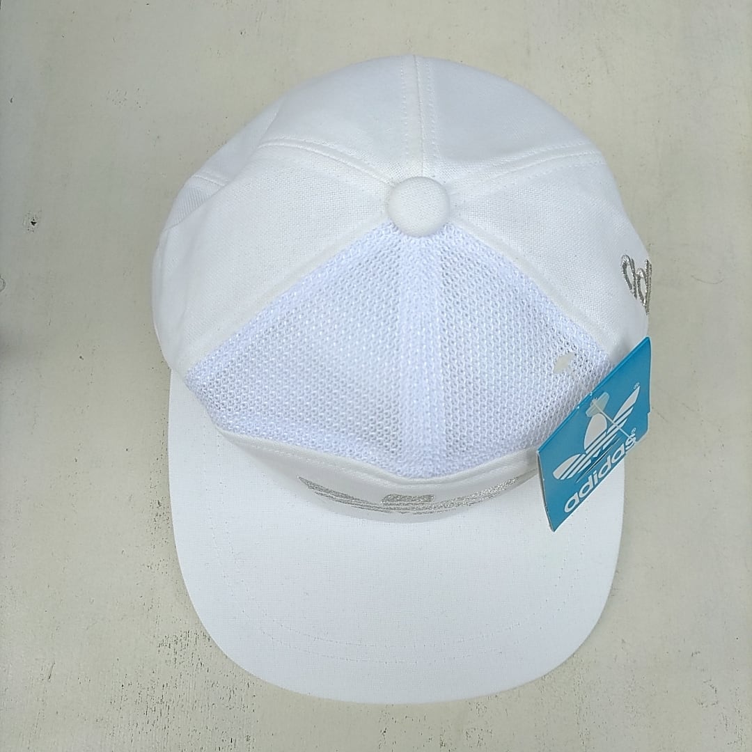 【80s】新品/アディダスadidas/デッドストック/ビンテージ/ヴィンテージ/デサントトレーディング/トレフォイル刺繍/メッシュ/6パネルキャップ/L/白×シルバー/P0822MBO0402/