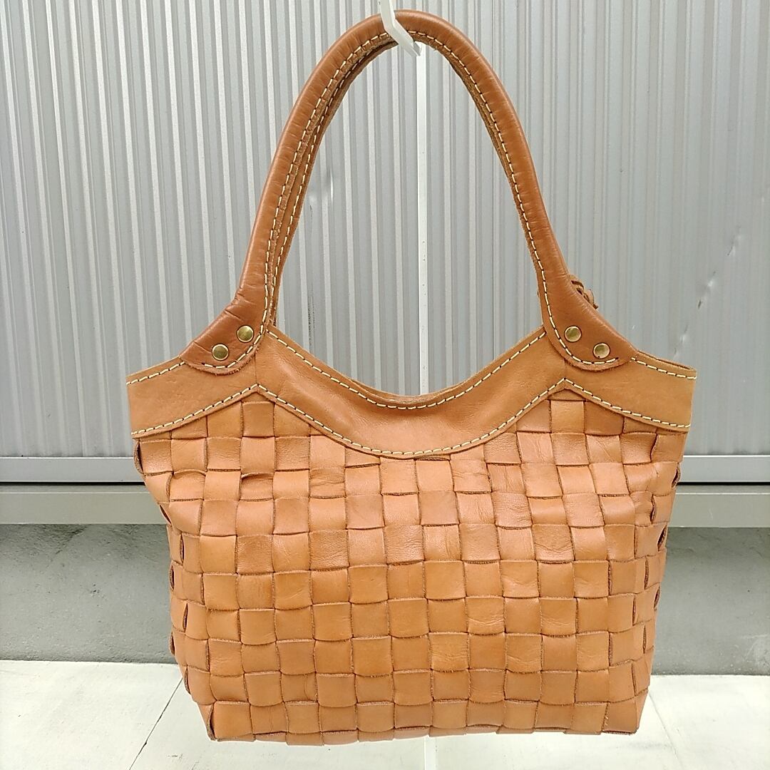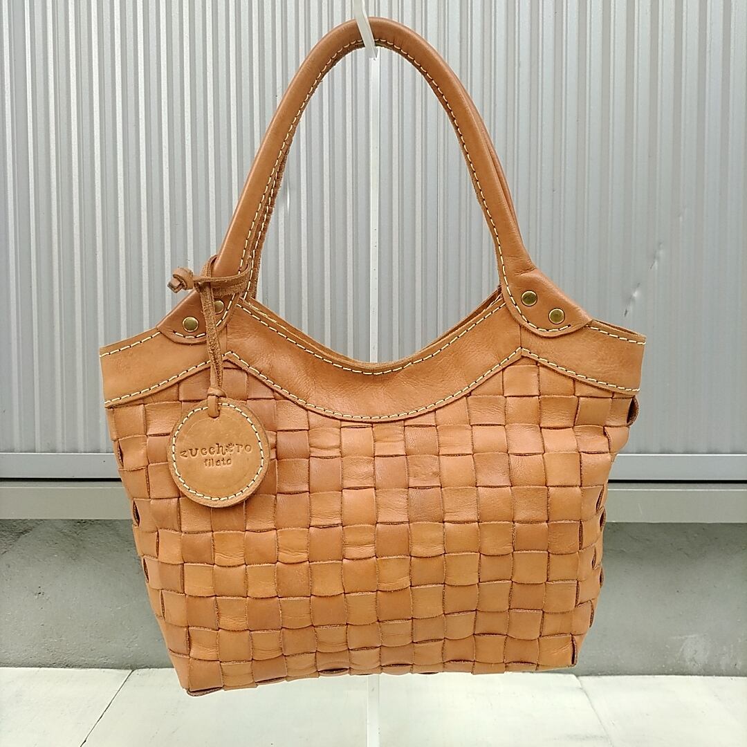 美品/ズッケロ フィラートzucchero filato/イントレチャート/メッシュ/レザー/ハンドバッグ/トートバッグ/茶/P0828KB0001/