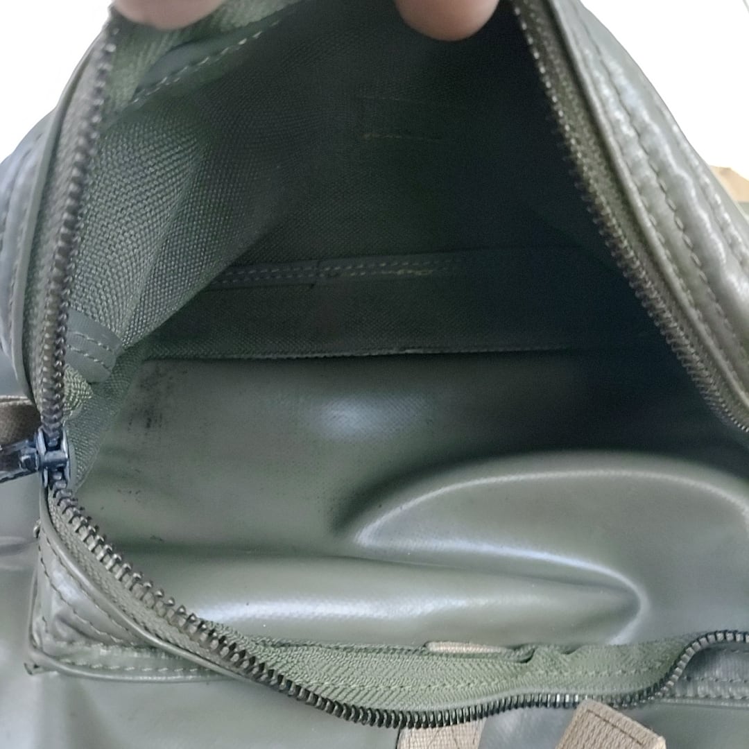 ★当時はミリタリーテイストをバッグのデザインに取り入れることは、まだ珍しい時代でした。ファスナーの開閉により、マチ幅や形状が変更出来るのも魅力の一つです。