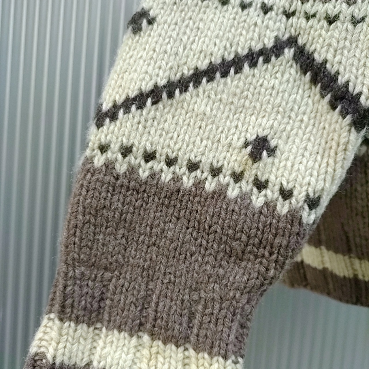 【90s】美品/チェックメイトCHECK MATE/ビンテージ/ヴィンテージ/古着/雪柄/ノルディック/ウール/カウチンセーター/ニット/ブルゾン/L/