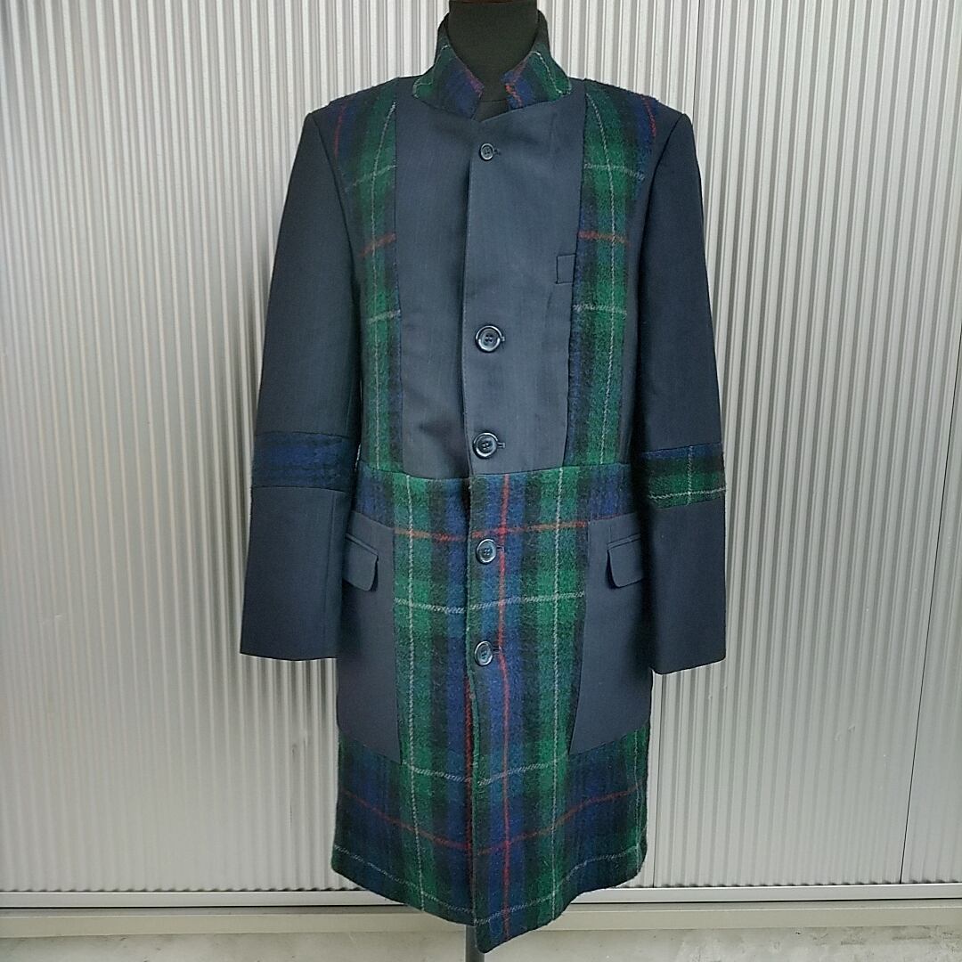 【英国製/解体再構築/2012AW】ジャンキースタイリングJUNKY STYLING LONDON/ヴィンテージ/ビンテージ/古着/リメイク/スーツ×ブランケット/チェスターコート/XS/ネイビー/PK24MBO0092/