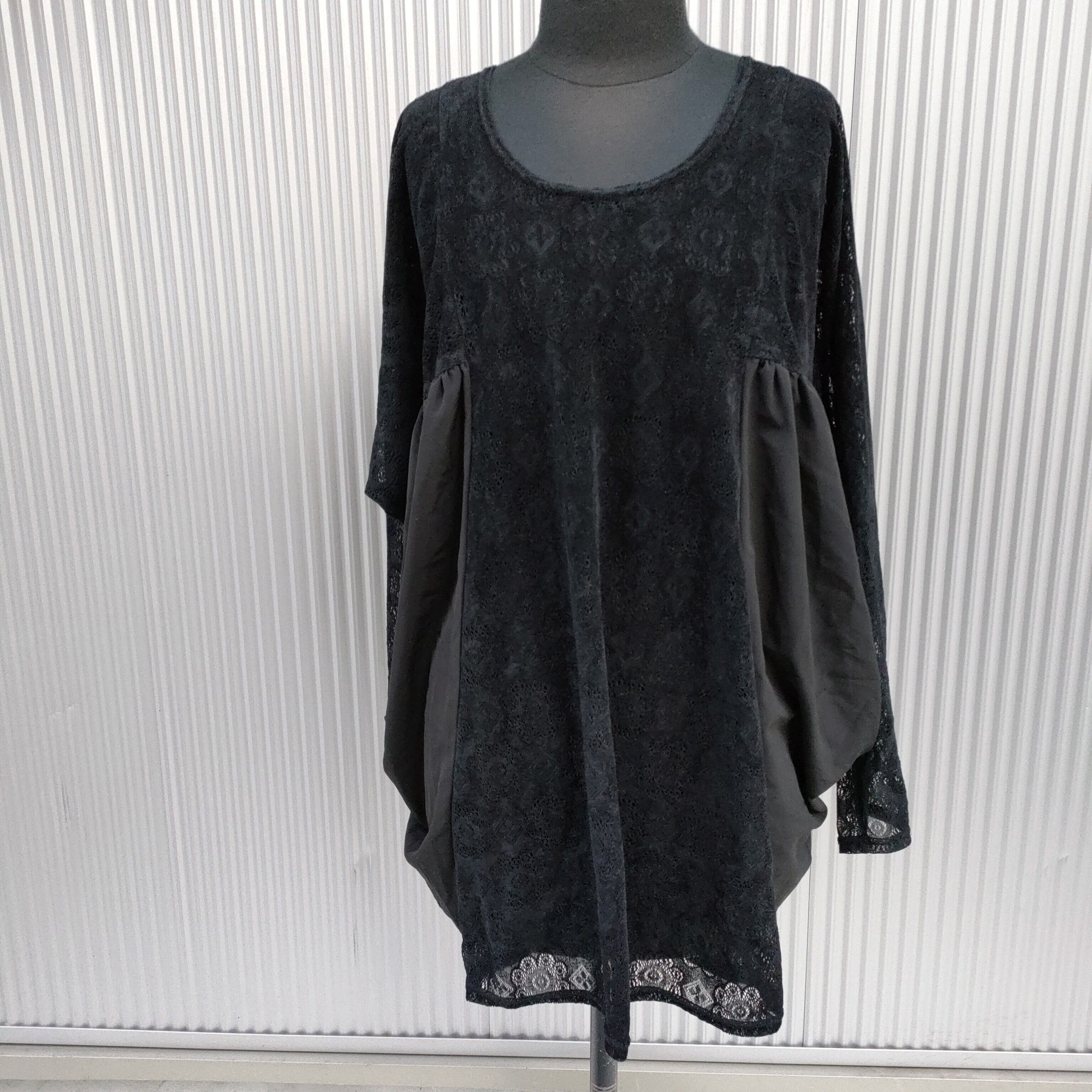 【国内正規品】美品/リミフゥLIMI feu/オーバーサイズ/ビッグシルエット/ベロアレース/切替/ブラウス/S/黒/QA120001/