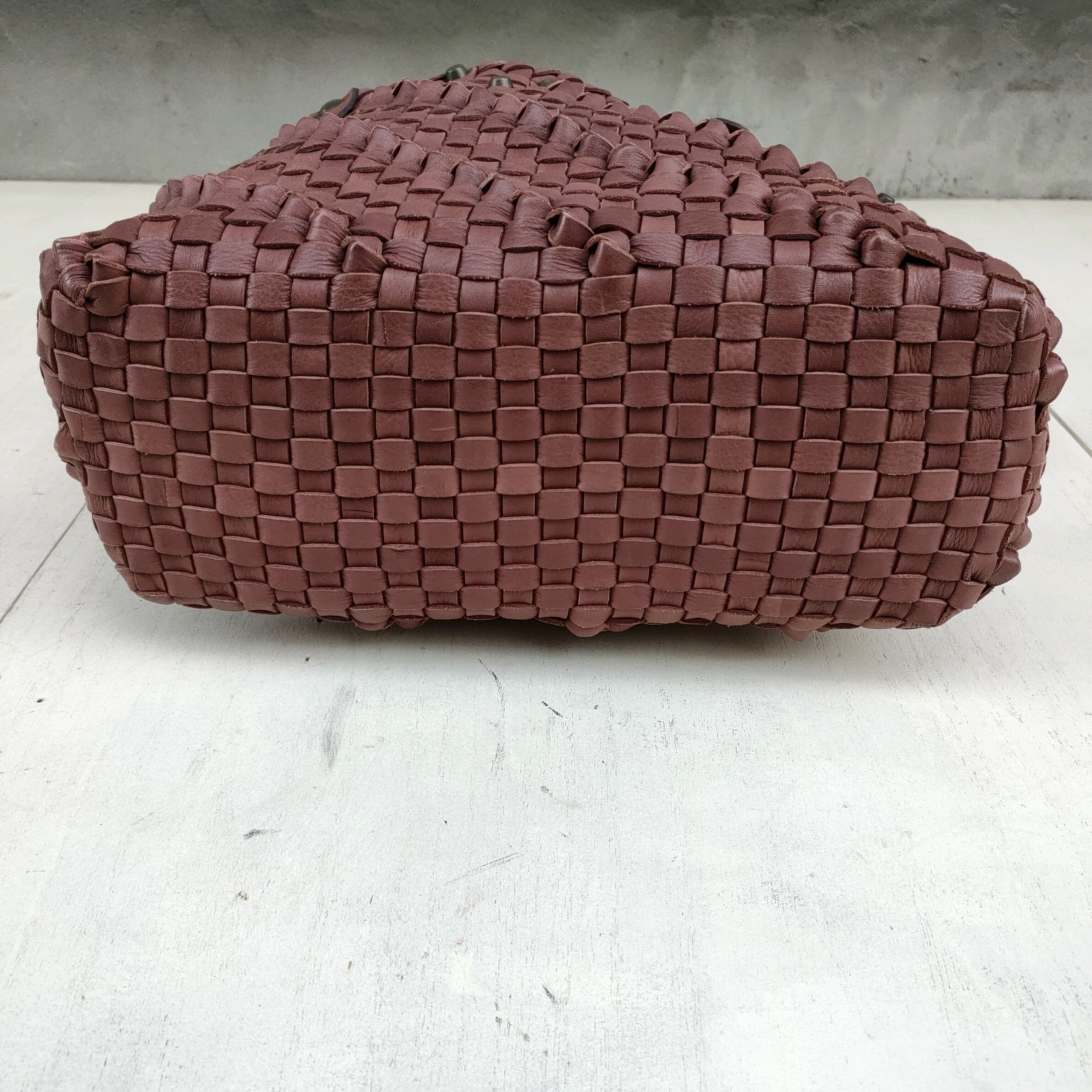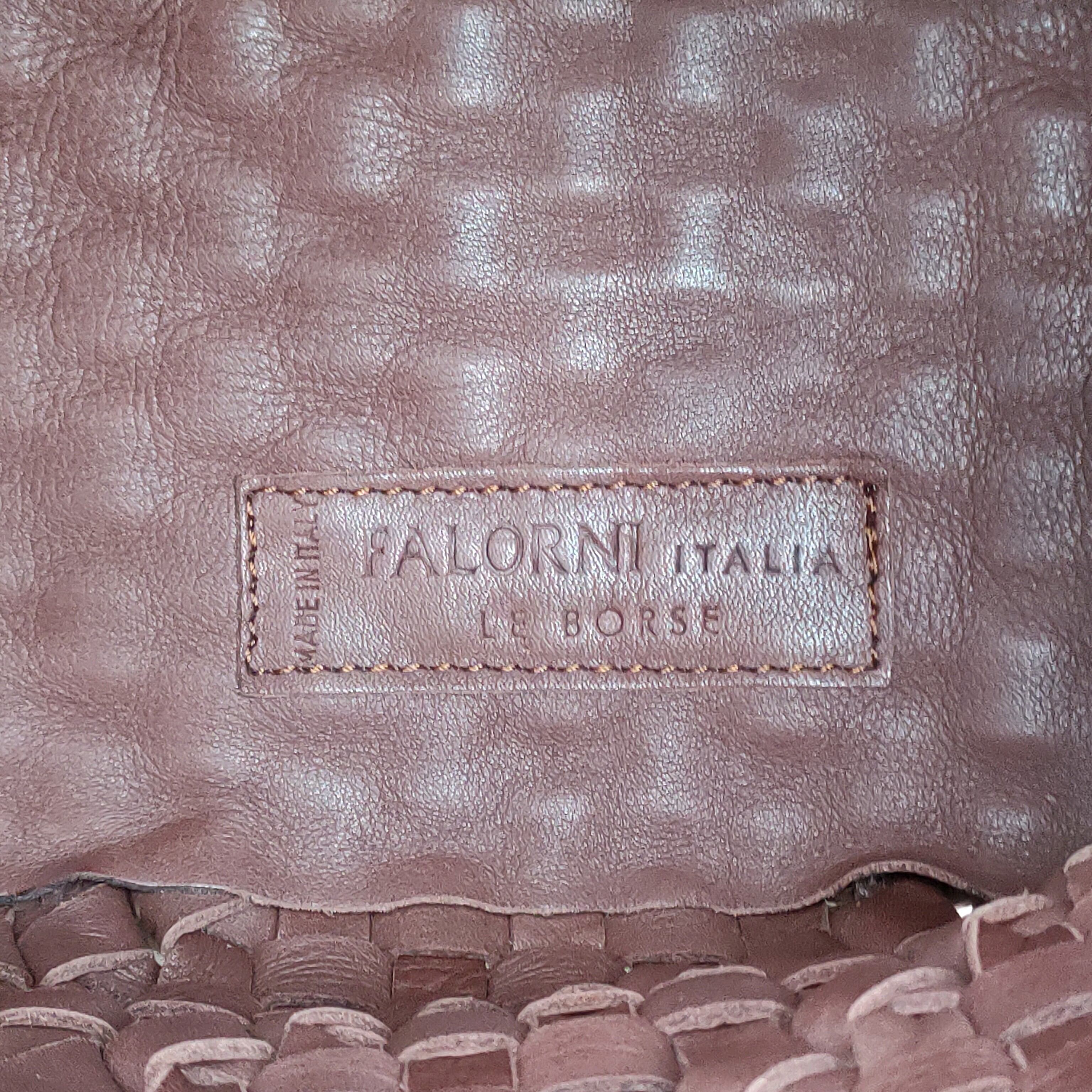 【国内正規品】美品/ファロルニFALORNI ITALIA/レザー/イントレチャート/メッシュ/スタッズ/トートバッグ/ハンドバッグ/赤茶系/茶系/QC20KK0052/